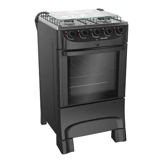 Fogão 4 Bocas Mueller MFI4BB com Mesa de Inox e Acendimento Automático Preto Fosco