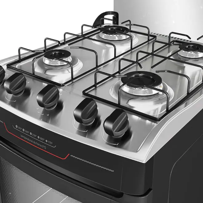 No forno, você conta com o sistema total clean, que facilita a limpeza. Seu amplo espaço interno pode ser aproveitado da maneira como preferir, com uma grade ajustável em dois níveis você adapta conforme a necessidade para o preparo das suas receitas. Já o duplo vidro na porta do forno oferece proteção térmica, melhor distribuição de calor e assados mais uniformes.