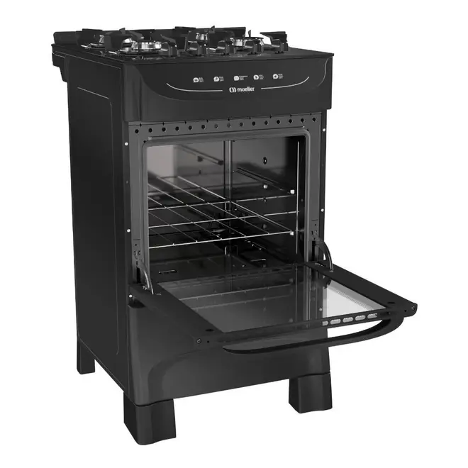 Fogão 4 Bocas Mueller MFV4BB com Mesa de Vidro e Acendimento Automático Preto Fosco - Bivolt