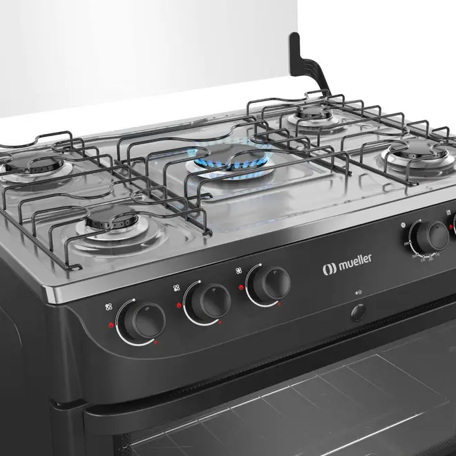 Fogão 5 Bocas Mueller MFI5BB com Mesa de Inox e Acendimento Automático Preto Fosco - Bivolt