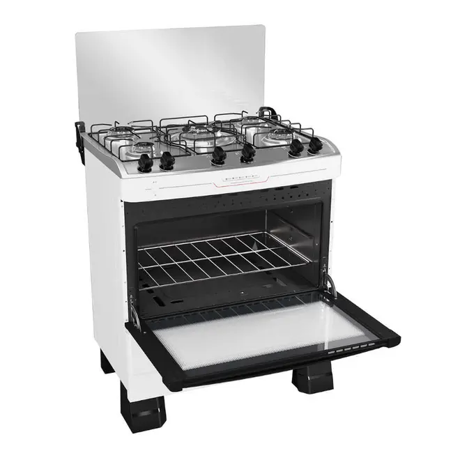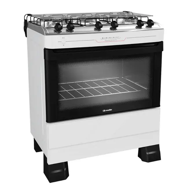 No forno, você aproveita ao máximo o espaço interno com a grade ajustável em dois níveis, ideal para diferentes tipos de preparo. A porta com duplo vidro garante proteção térmica, melhor distribuição de calor e assados sempre no ponto certo. E para completar, o modelo conta com válvula de segurança no forno, que interrompe automaticamente a saída de gás caso a chama se apague, mais tranquilidade e proteção para sua casa.