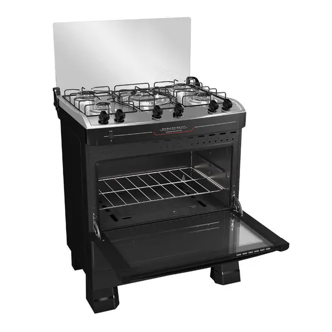 No forno, o destaque vai para a grade ajustável em dois níveis, que permite melhor aproveitamento do espaço interno. Outro grande diferencial é sua porta com duplo vidro, oferecendo proteção térmica, distribuição uniforme do calor e assados no ponto certo. Além disso, a válvula de segurança no forno corta automaticamente a saída de gás caso a chama se apague acidentalmente, proporcionando muito mais segurança para sua casa.