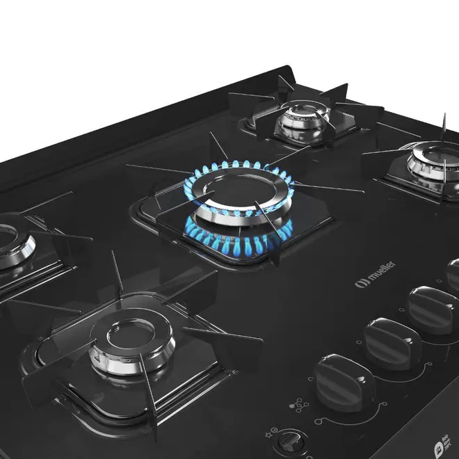 Fogão 5 Bocas Mueller MFV5BB com Mesa de Vidro e Acendimento Automático Preto Fosco - Bivolt