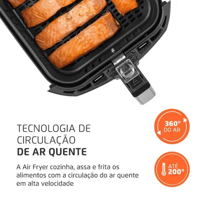 Além de ser muito fácil de usar e contar com um Display Digital de temperatura, o que permite o ajuste preciso da temperatura e do tempo de cozimento. Além disso, possui um timer de até 60 minutos e um cesto removível com revestimento antiaderente que facilita a limpeza!