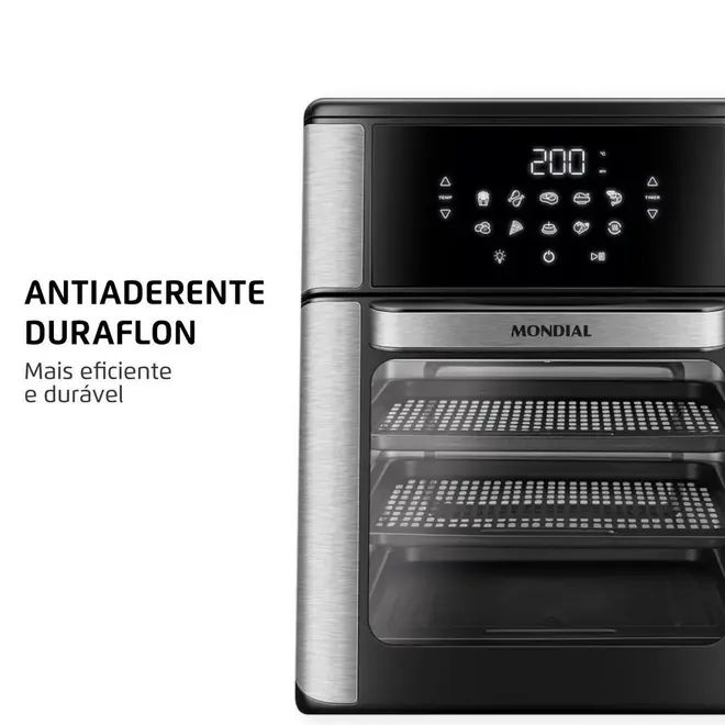 Gostou? Então aproveite e garanta agora mesmo a sua Fritadeira Air Fryer Mondial Forno Oven AFON-12L-BI 12 Litros 2220W Preto/Inox!