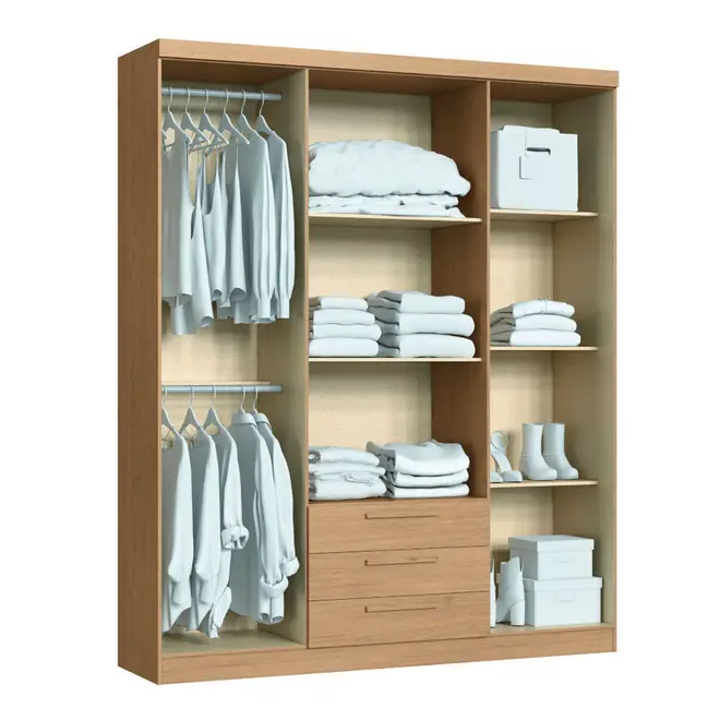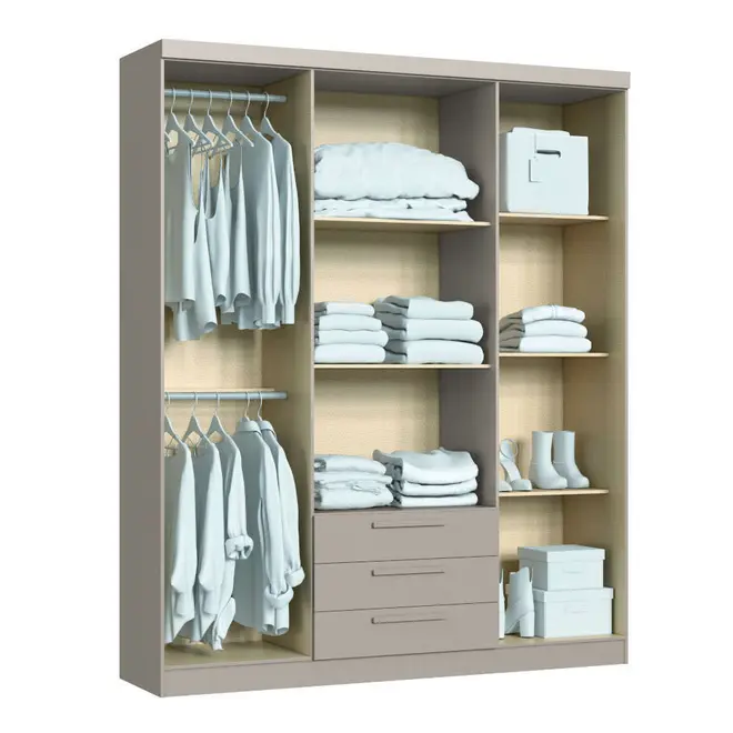 Guarda-Roupa Casal 4 Portas 3 Gavetas Castro Bravo New