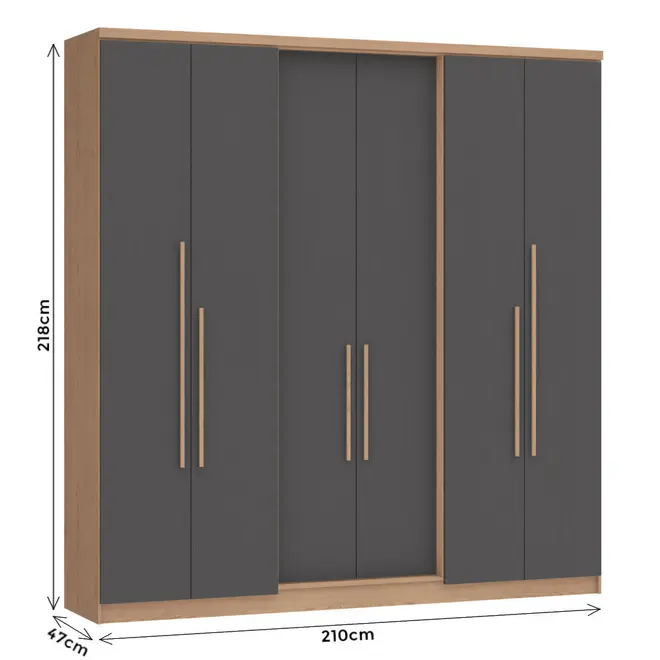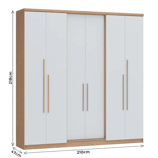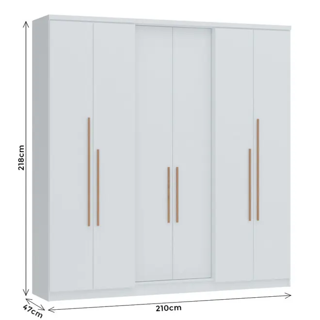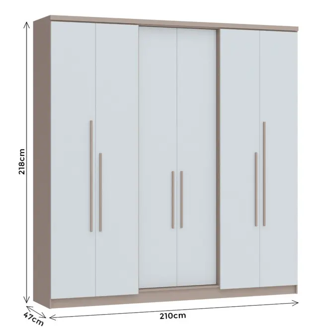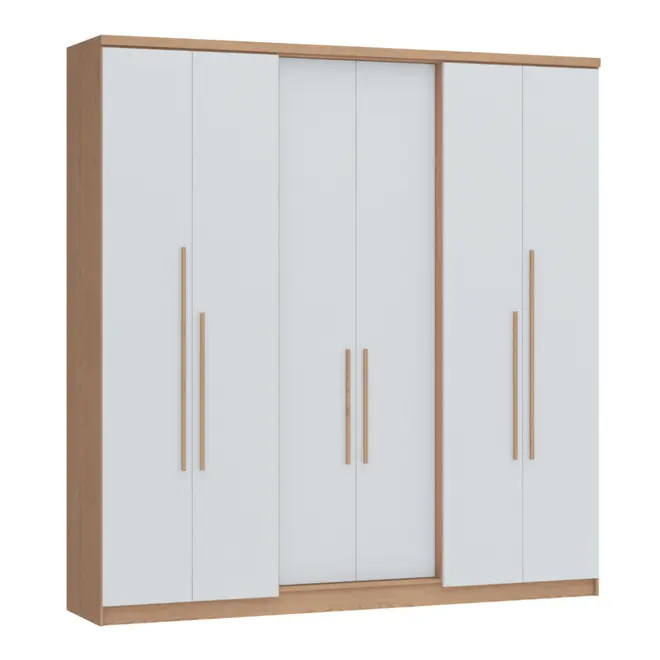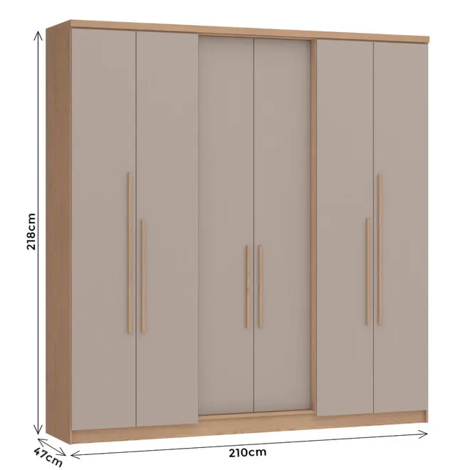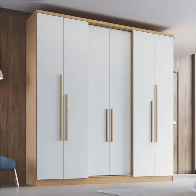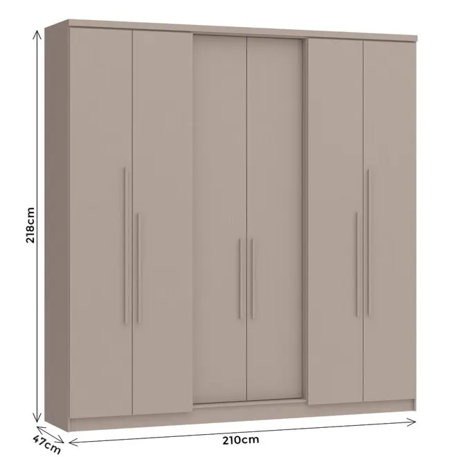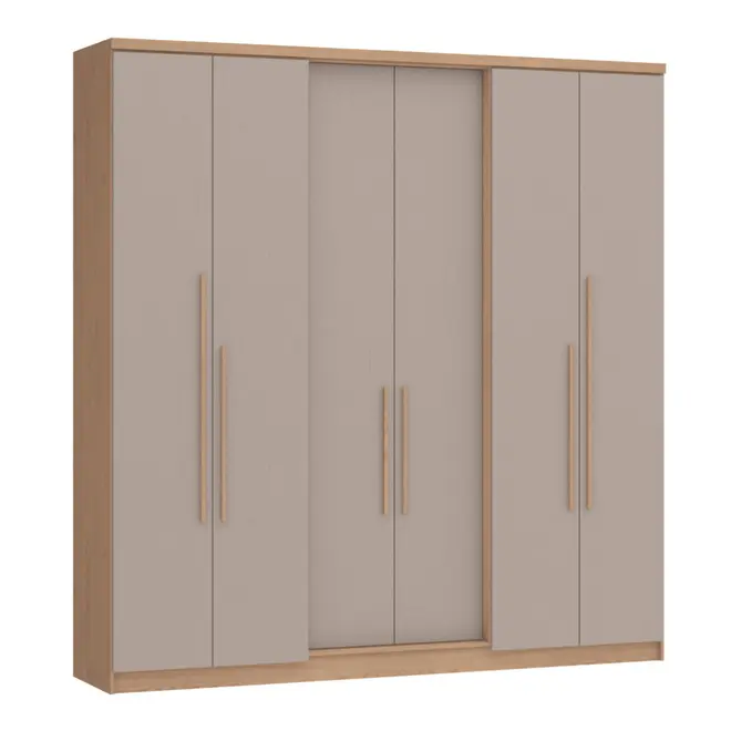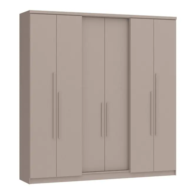 Com estrutura em MDP, o Guarda Roupa Sonata oferece resistência e durabilidade para o uso diário, sendo ideal para quem busca um móvel confiável e com um bom acabamento. Seu design moderno, com 6 portas, traz uma aparência imponente e elegante, perfeita para compor diferentes estilos de ambientes.