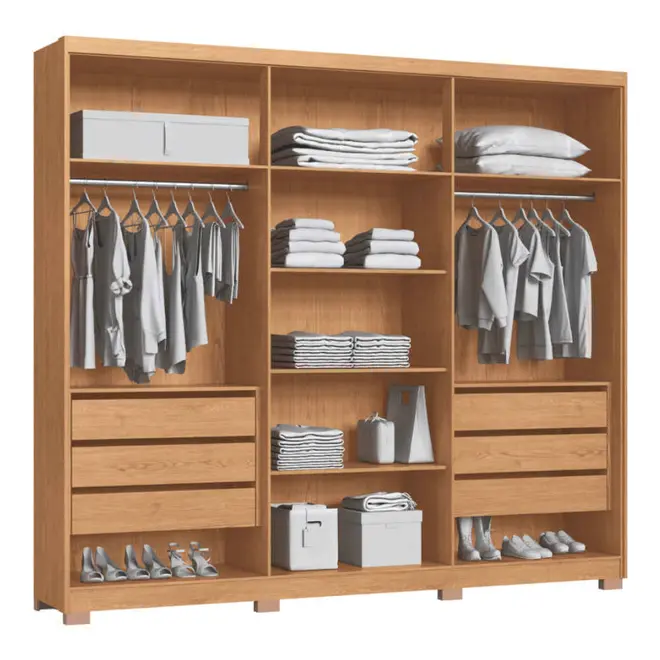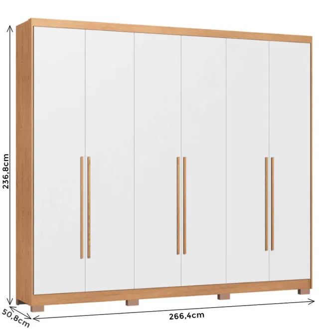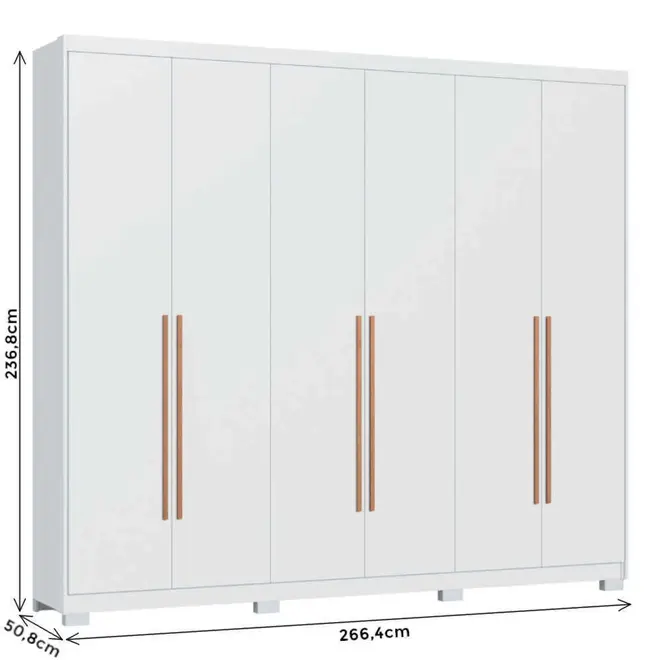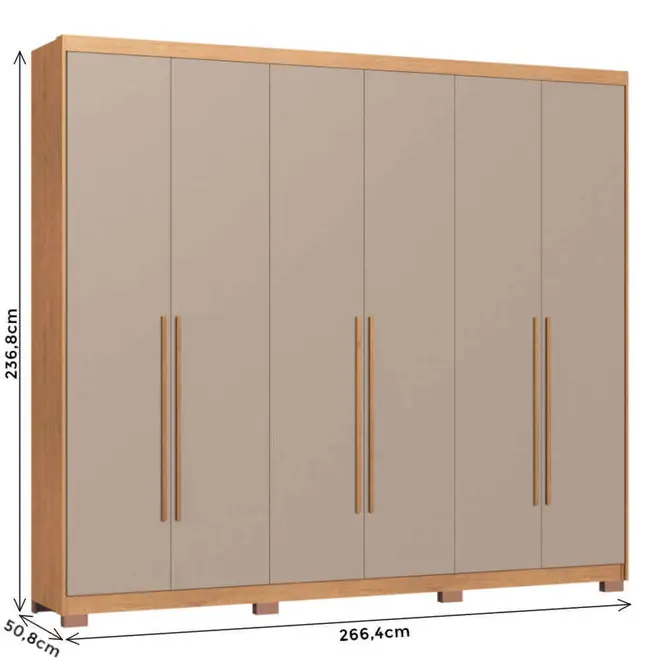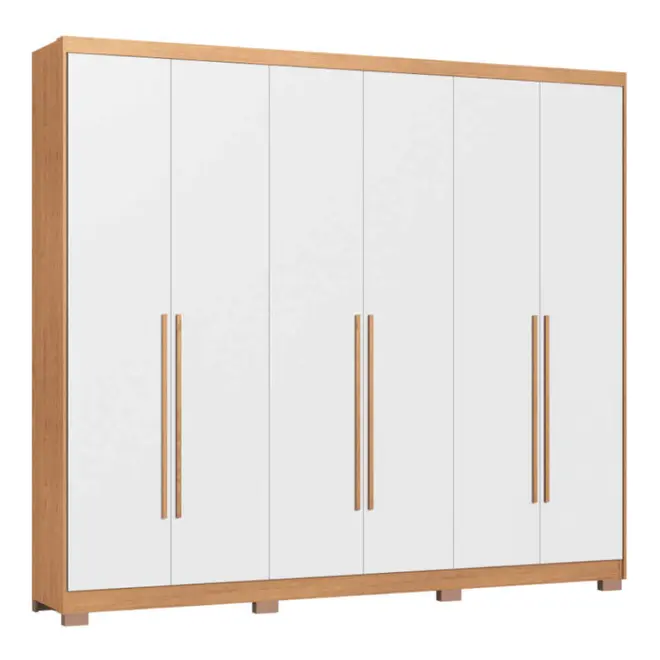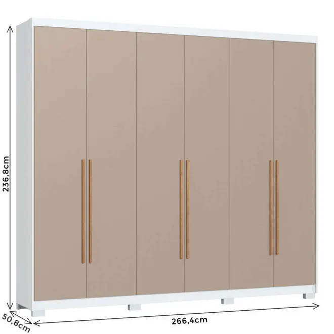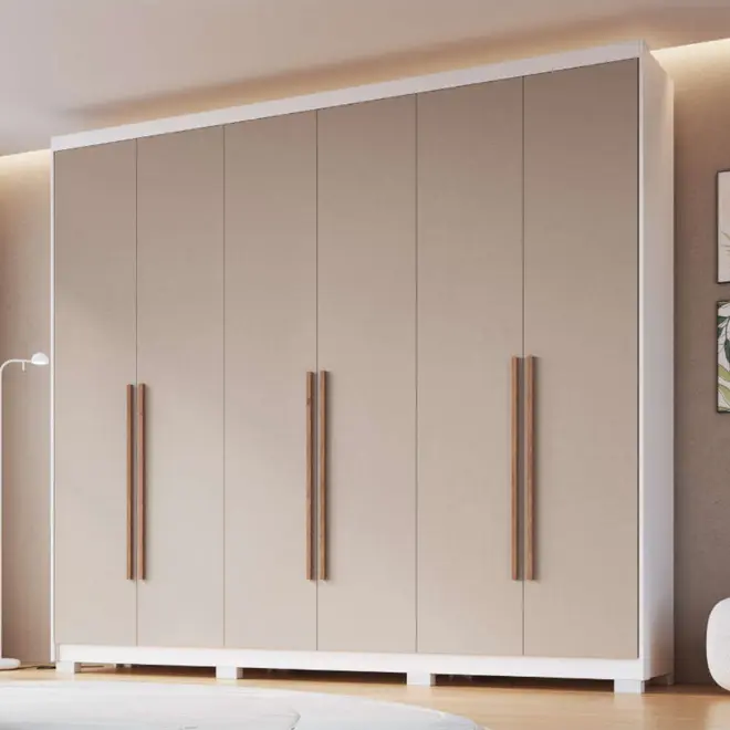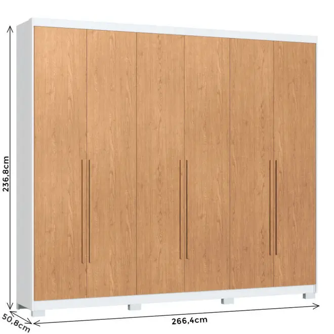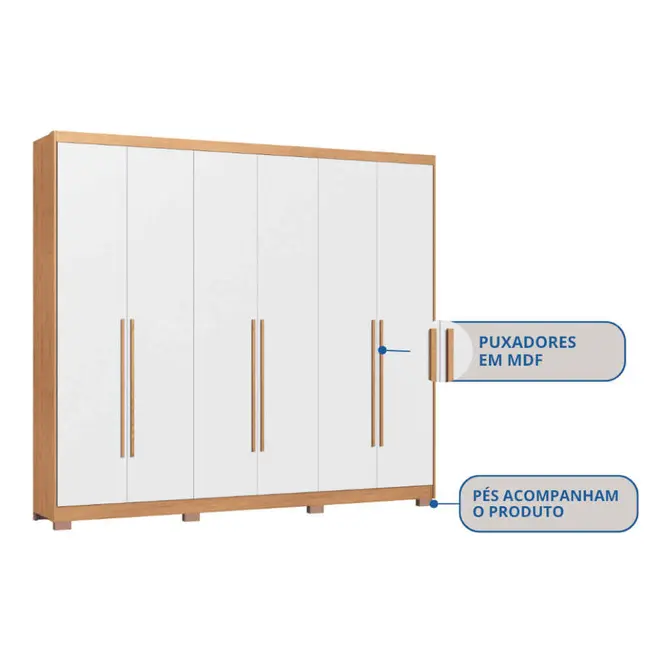 O seu amplo espaço interno é dividido em 6 portas, que facilitam o acesso ao interno do móvel de forma prática e organizada. O interior conta com 6 prateleiras bem distribuídas para acomodar roupas, calçados e objetos pessoais, além de 6 gavetas funcionais, ideais para armazenar peças menores ou mais delicadas. As dobradiças de 35mm com amortecedor proporcionam um fechamento suave e silencioso das portas, enquanto as corrediças telescópicas com extração total garantem que as gavetas deslizem com leveza e ofereçam acesso completo ao seu interior.