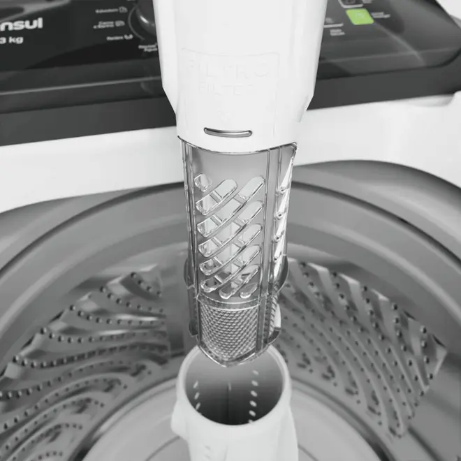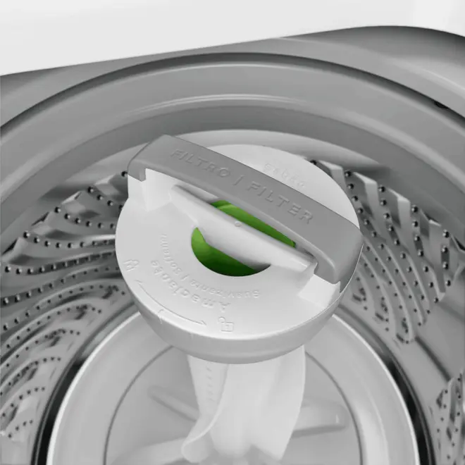 Pensando em cada detalhe essa lavadora foi projetada para facilitar o seu dia a dia e trazer um destaque para sua lavandeira com seu cesto em inox, garante durabilidade, resistência e um visual moderno, por dentro e por fora da máquina. Além disso, seu filtro de fiapos integrado com o dispenser bem pensado? é resistente e super fácil de usar e limpar. E o melhor é que esse sistema de filtragem e agitação é tão eficiente que consegue reter até 50% mais fiapos das roupas, deixando tudo muito mais limpo e com aparência de novo.