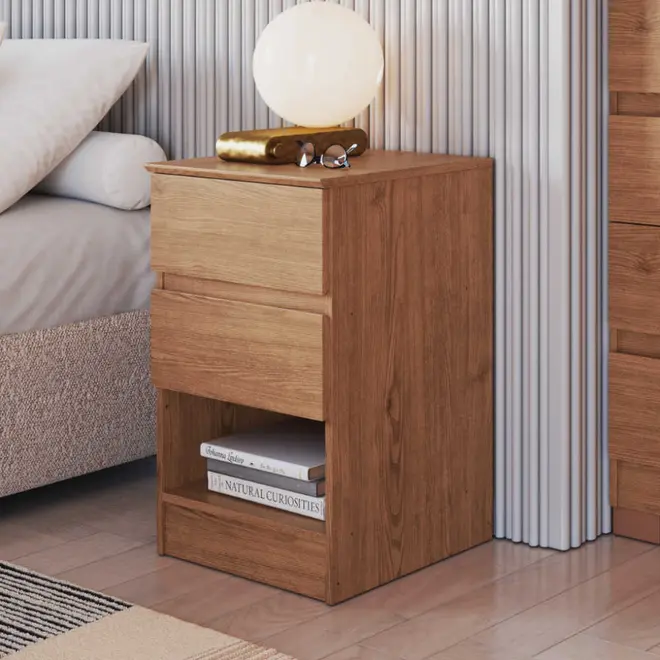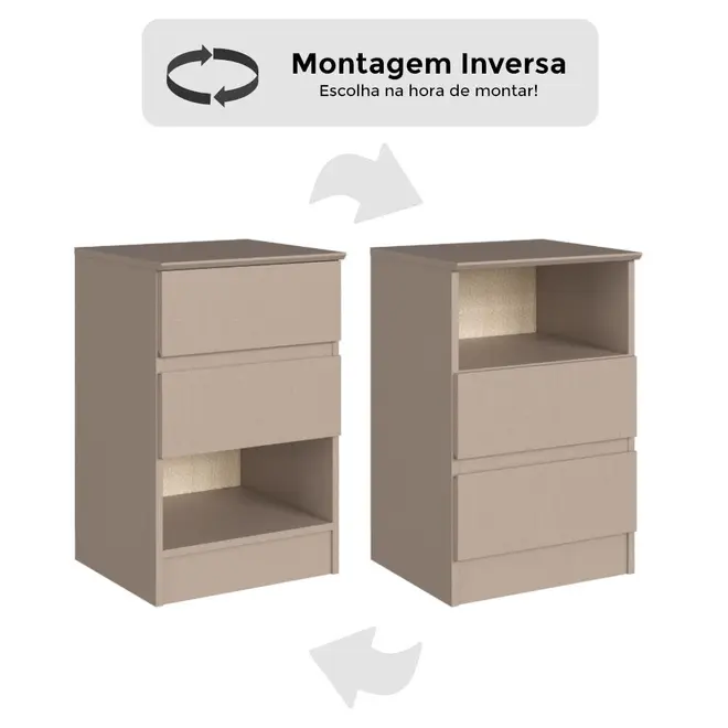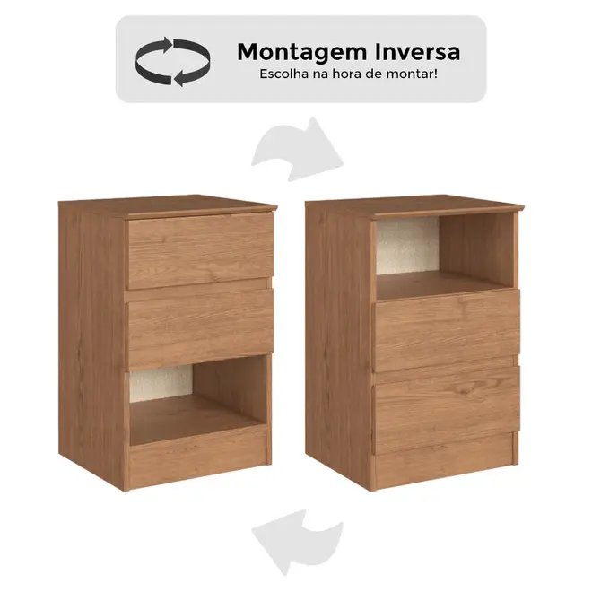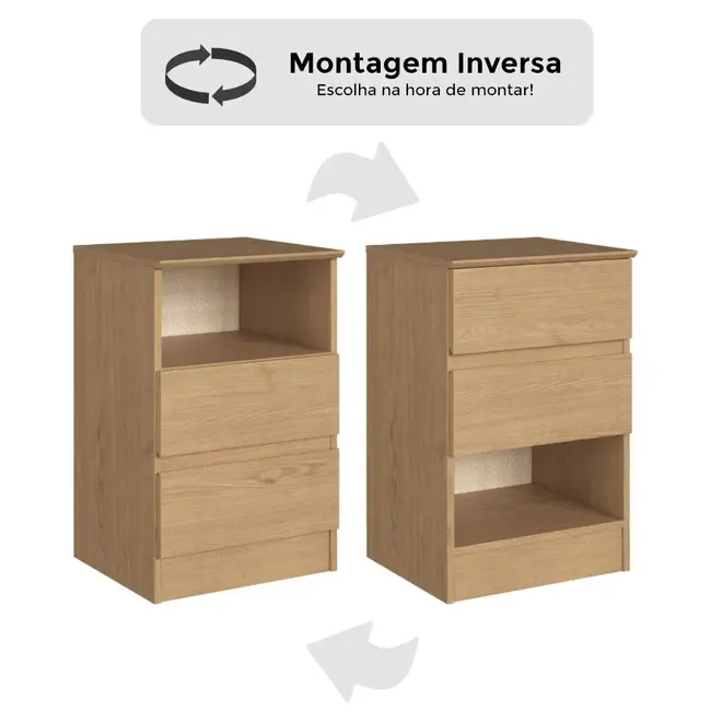 O grande diferencial desta mesa de cabeceira está na sua versatilidade, ela conta com 2 gavetas equipadas com corrediças telescópicas, que garantem abertura suave e acesso total ao conteúdo, além de 1 nicho funcional, ideal para objetos decorativos, livros ou itens de uso frequente. E o melhor, você escolhe como montar! A Aurora 5080A permite montagem inversa, podendo ser configurada com o nicho acima ou abaixo das gavetas, de acordo com sua preferência.