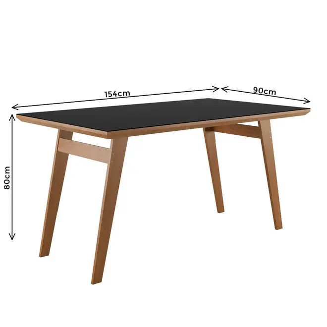Mesa de Jantar 6 Lugares com Tampo de Vidro Madetal Onix 154x90cm