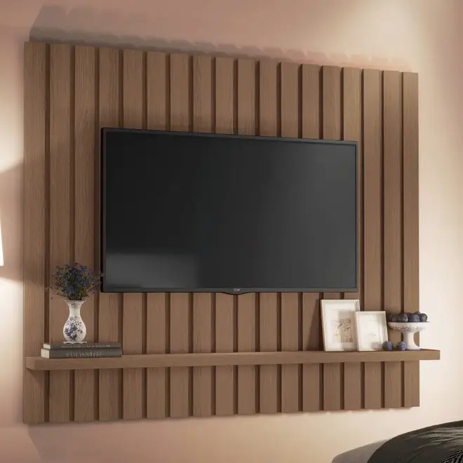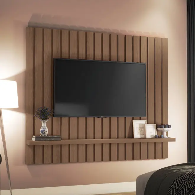 \n\n \n\nEle possui uma estrutura cheia de benefícios para te oferecer, começando por seu design simples mas com o que é necessário para auxiliar na sua rotina. Possui uma prateleira onde você pode acomodar suas decorações, além de contar com um espaço perfeitamente bem distribuído que sustenta televisores até 60 polegadas!