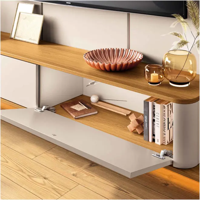 Projetado para acomodar televisores de até 70 polegadas, o Painel Galax 1.8 valoriza o ambiente com elegância e modernidade.