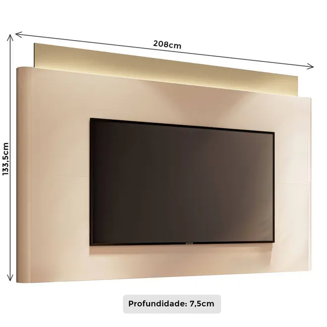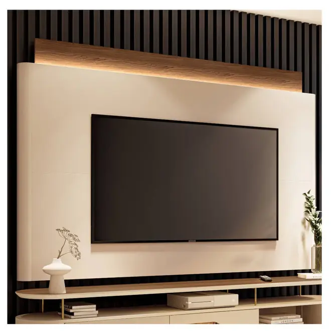 Projetado para acomodar TVs de até 85 polegadas, o Painel Nobre 2.2 é mais do que funcional, é uma peça que valoriza o ambiente com estilo e bom gosto. Um dos grandes destaques deste modelo é a fita de LED embutida, que cria uma iluminação indireta charmosa e aconchegante, realçando os contornos do móvel e adicionando um toque de sofisticação à decoração.