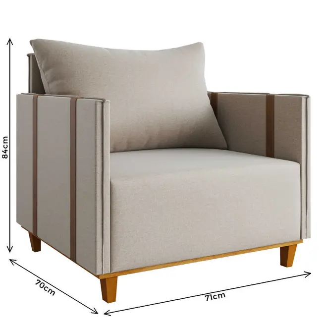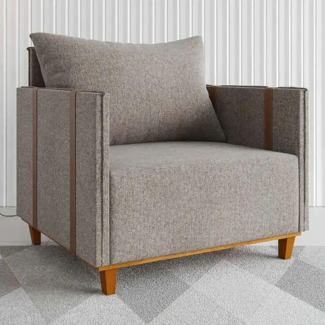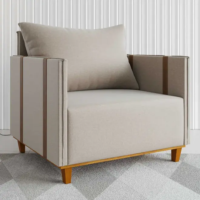Para dar um toque final trazendo ainda mais elegância para a poltrona seu revestimento em tecido linho, tem acabamento suave ao toque e visual sofisticado, além disso, as cintas em corano acrescentam um detalhe moderno. Sem falar dos seus 4 pés de madeira que oferecem estabilidade e um charme atemporal. Ideal para compor ambientes, a Poltrona Glamour suporta até 120 kg e é uma escolha que une estilo e conforto em qualquer espaço.