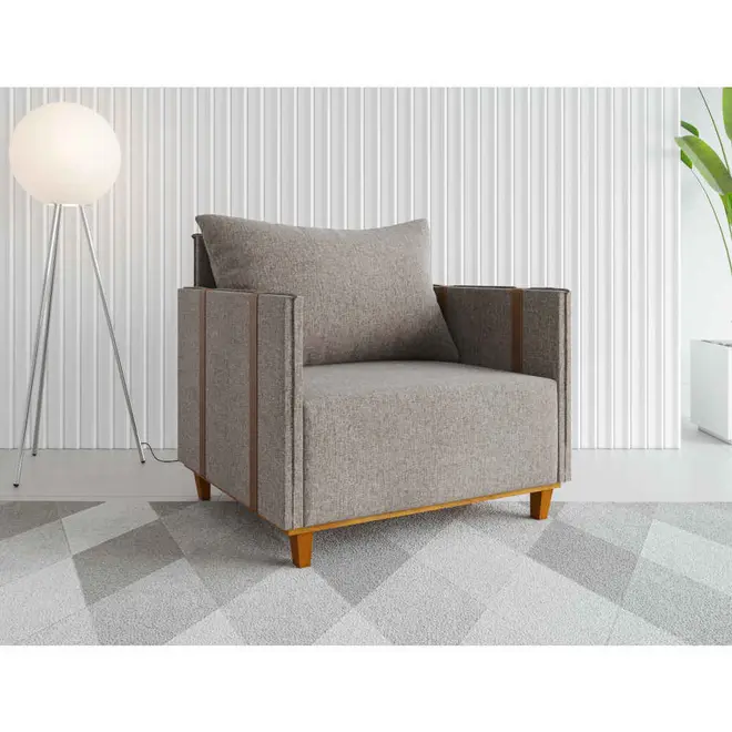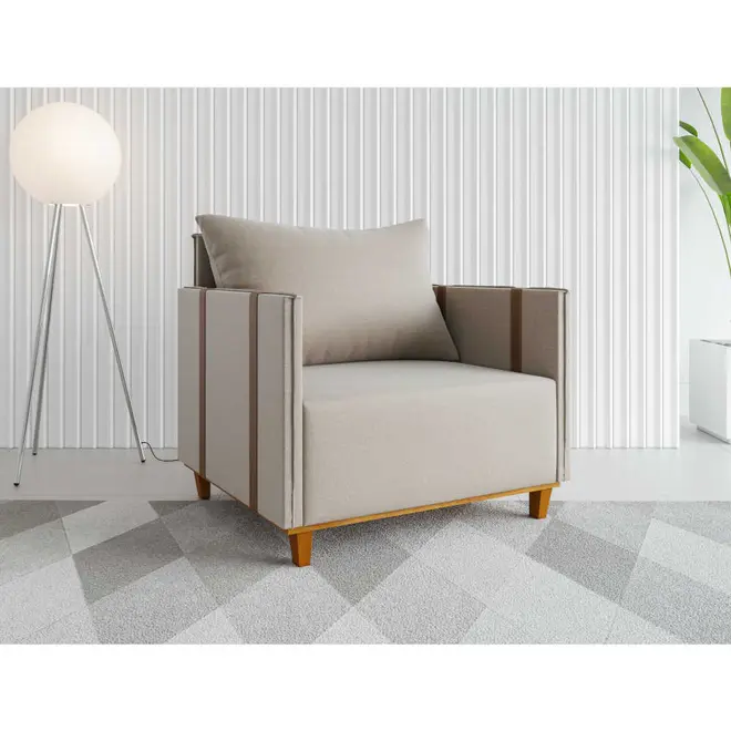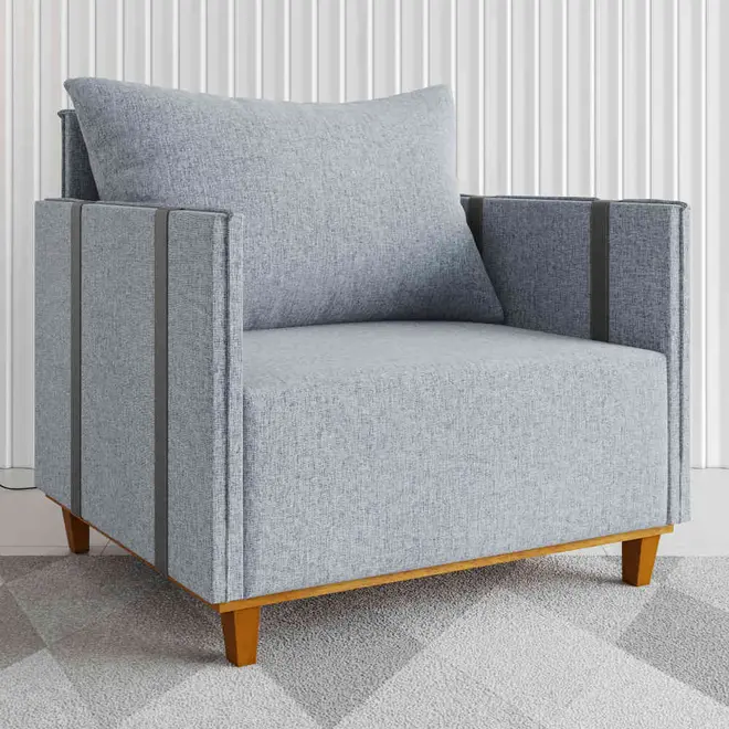 A Poltrona Glamour da Vian é a combinação certa de conforto, elegância e resistência, ideal para o dia a dia. Com uma estrutura robusta feita apartir de madeira de eucalipto, esse móvel é resistente e robusto, feito para durar. Seu assento com espuma D23, mola bonel e percinta elástica garante firmeza e maciez no uso diário, enquanto a almofada do encosto, com enchimento em 100% fibra siliconada, proporciona um toque extra de aconchego.