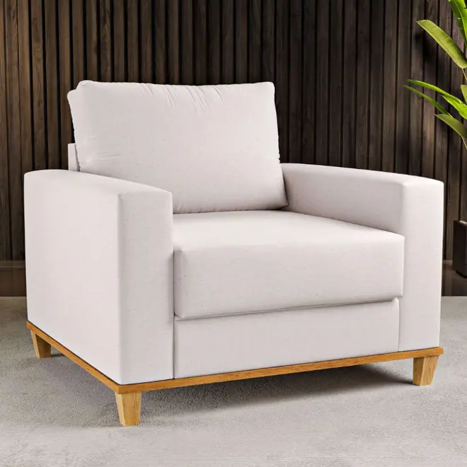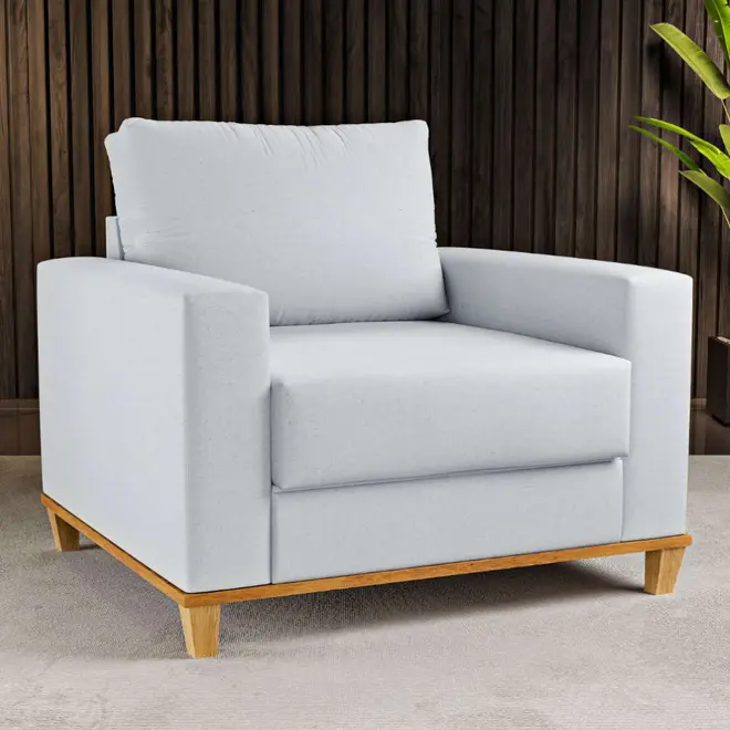 Uma das vantagens desse mobiliário é o fato dele ser fabricado com madeira de eucalipto, material que em conjunto da fibra 100% siliconada presente no encosto do móvel vai promover uma vida útil mais longa ao produto, além de claro, causar um custo-benefício maravilhoso para você poder desfrutar dessa poltrona por um longo período de tempo!
