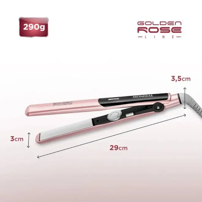 | Itens Inclusos | 1 Prancha Mondial P-20 Golden Rose; 1 Manual do produto. |