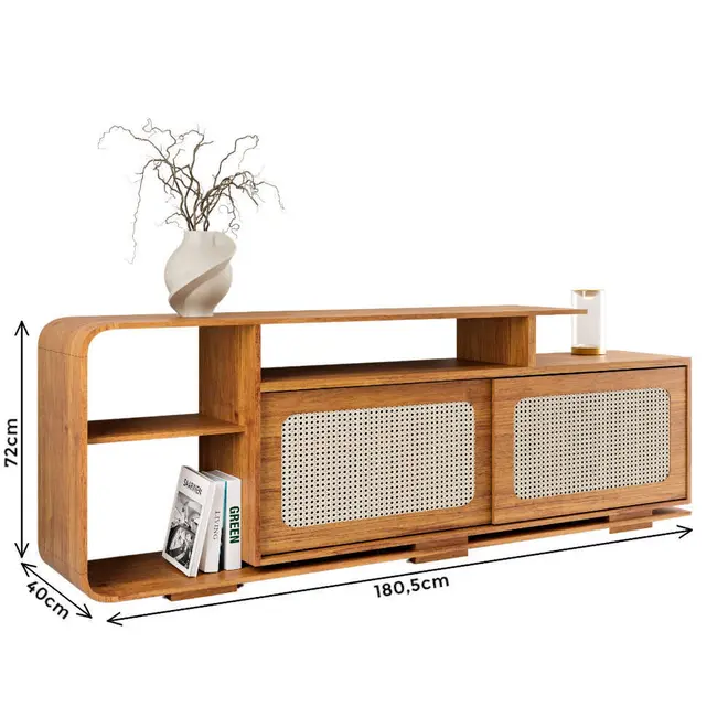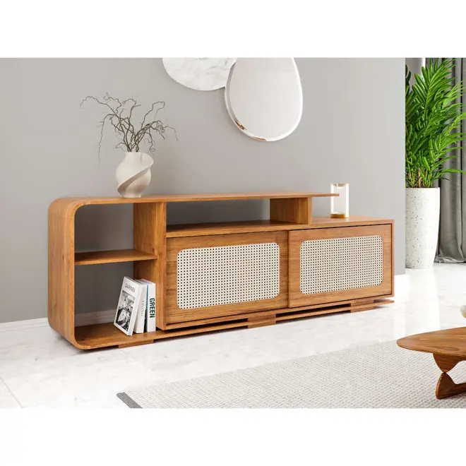 O Rack Madrid foi cuidadosamente projetado para atender às necessidades do dia a dia sem abrir mão da estética, com 2 portas deslizantes com detalhes em palha natural, ele oferece não apenas um toque único ao ambiente, mas também praticidade para guardar objetos e manter o espaço sempre organizado. Os nichos centrais são ideais para acomodar aparelhos eletrônicos como decodificadores, consoles ou caixas de som, permitindo fácil acesso.