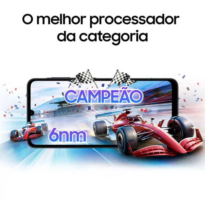Equipado com 128GB de armazenamento interno e 4GB de memória RAM, que ainda pode ser expandida com mais 4GB de RAM virtual (RAM Plus), ele oferece fluidez ao rodar apps, jogos e vídeos, sem interrupções. Seu processador Mediatek Helio G99 de 6nm entrega uma performance até 84% superior ao modelo anterior, garantindo velocidade e eficiência em diversas tarefas diárias. A tela ampla de 6,7” com resolução HD+, taxa de atualização de 90 Hz e vidro temperado reforçado oferece cores vibrantes e uma experiência visual confortável para quem curte maratonar séries, assistir vídeos ou navegar nas redes sociais com mais imersão.