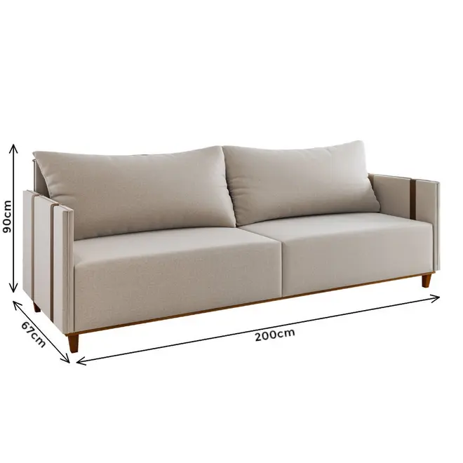 Para dar o toque final ao móvel, seu revestimento é feito com tecido linho que confere suavidade ao toque e uma aparência refinada, ideal para ambientes que prezam por elegância e estilo. As cintas laterais em corano acrescentam um detalhe ainda mais elegante e contemporâneo, garantindo um visual moderno e versátil que se adapta facilmente a diferentes estilos de decoração.