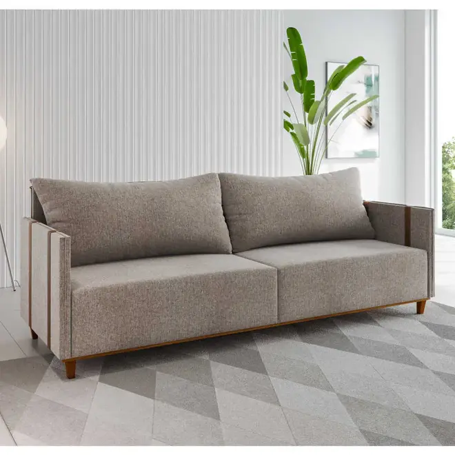 Ideal para compor salas de estar sofisticadas e acolhedoras, o Sofá Living Montreal se destaca pela sua estrutura resistente em madeira de eucalipto, que proporciona maior estabilidade e uma longa vida útil. Seus 5 pés de madeira complementam o design com um toque elegante e discreto, garantindo firmeza ao mesmo tempo em que valorizam a estética do ambiente.