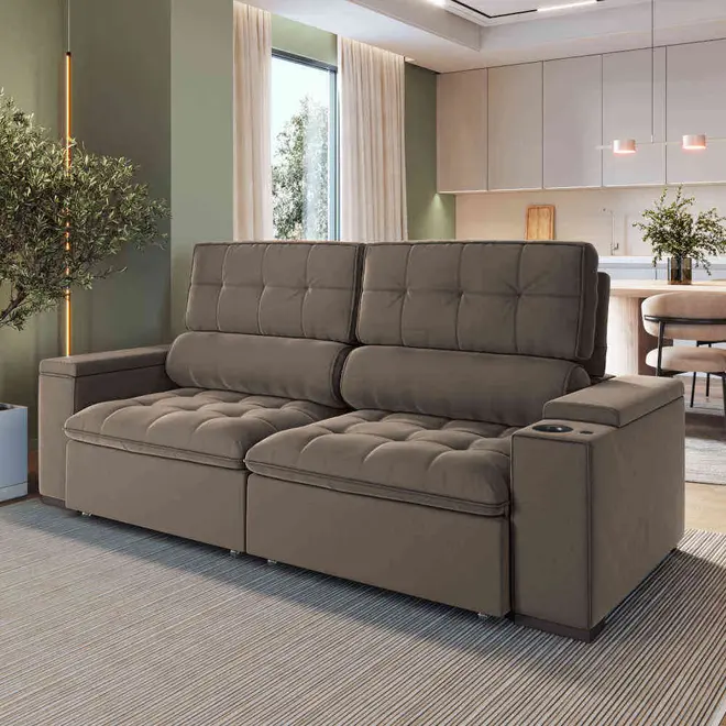 Toda a beleza e conforto do Sofá 4 Lugares 2,5m Retrátil/Reclinável com porta copo veludo Luxe Olm Estofados Medellin você encontra aqui na Schumann, não perca mais tempo e garanta já o seu!