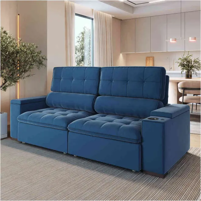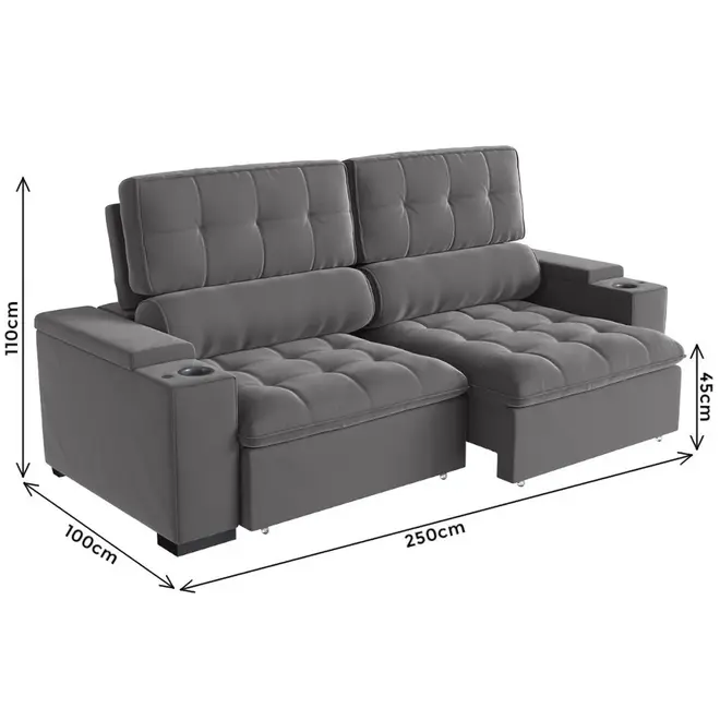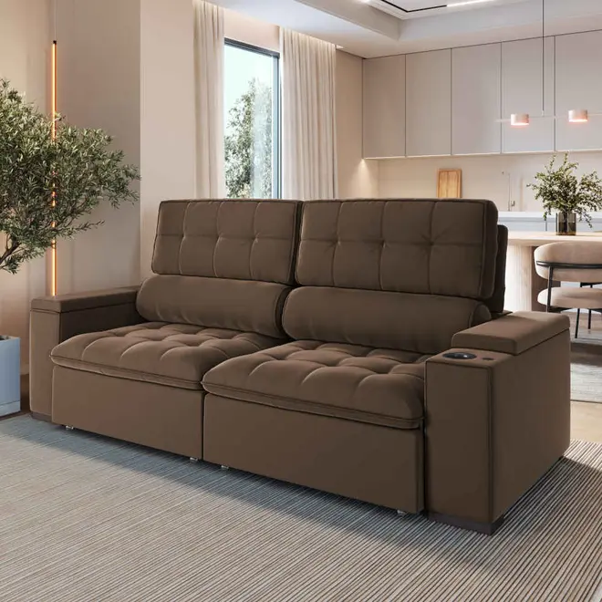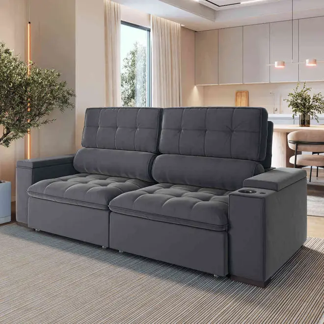 | Itens Inclusos | 1 Sofá 3 Lugares 2,5m Retrátil/Reclinável com Porta Copos e Tomada USB Veludo Luxe Olm Medellin 1 Manual do produto |