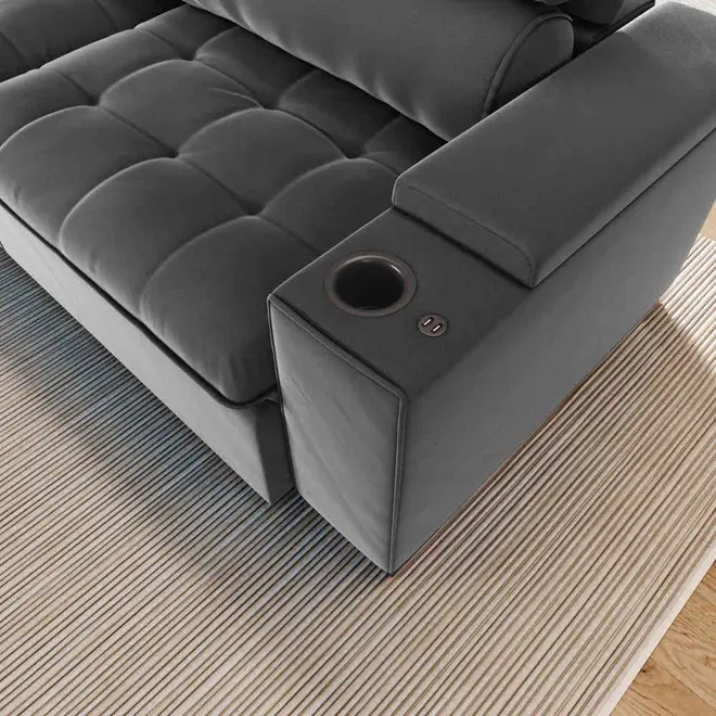 O novo Sofá Medellin da OLM chegou trazendo um design sofisticado que impressiona! Seu revestimento em tecido veludo luxe traz toque suave e delicado ao produto, seu braço com sistema de correr, porta copos e tomada USB para carregamento de celular, tornam o estofado ideal para qualquer ocasião, além de ser um móvel super útil e proporcionar um bom custo-benefício.
