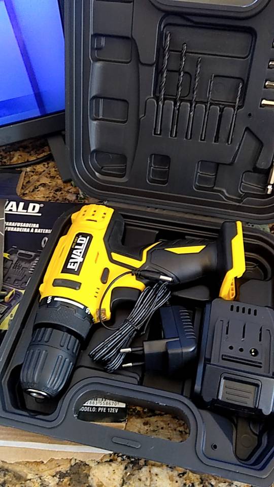 Parafusadeira e Furadeira à Bateria 12V Bivolt PFE-12EV com Maleta e Kit EVALD Bivolt