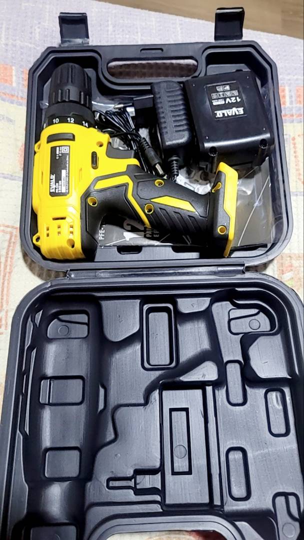Parafusadeira e Furadeira 12V 3/8 POL 10 MM 16 Torques com Maleta e Kit 13 Acessórios Bivolt PFE-12EV EVALD