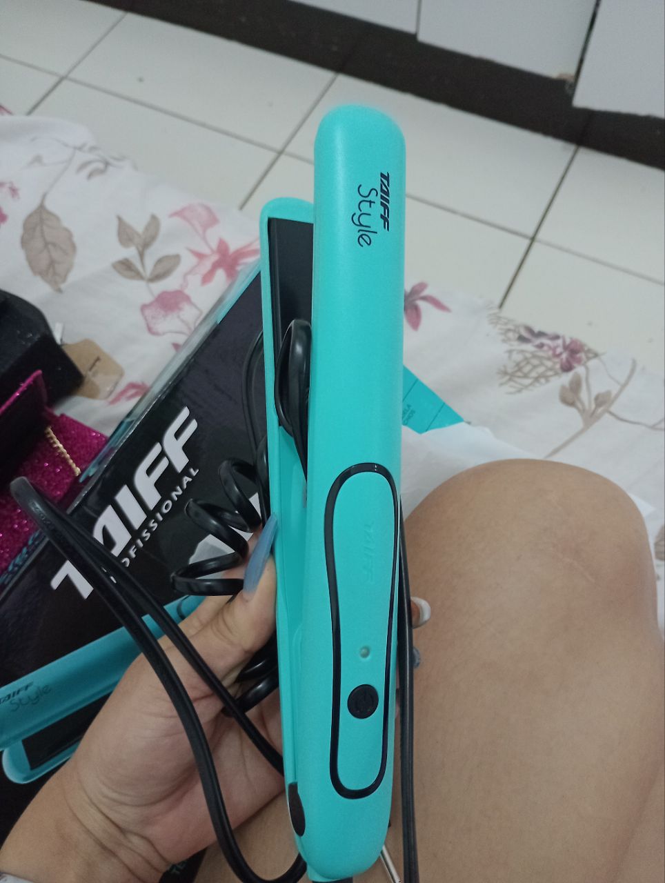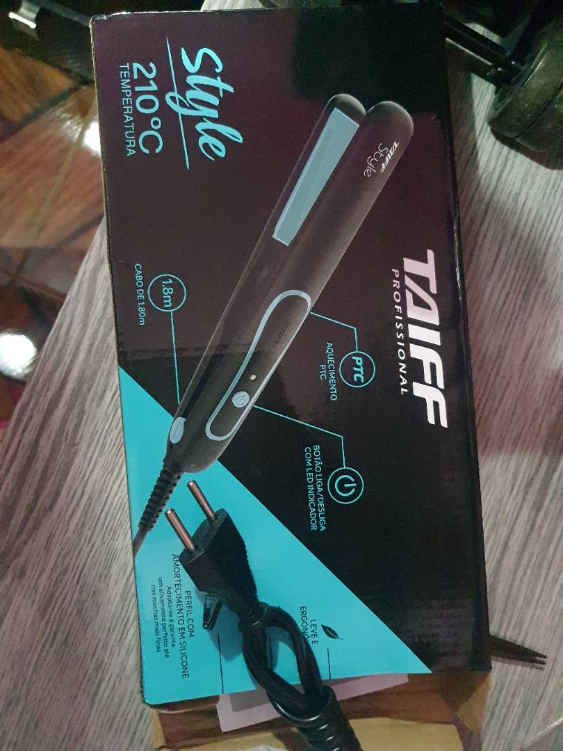 Prancha Taiff Style 210ºC Preta com Azul Bivolt Com muito estilo, ergonomia, leveza, performance e temperatura exata de 210°C, a chapa Style proporciona agilidade e conforto no alisamento dos fios, deixando-os com um brilho intenso graças a sua tecnologia PTC e amortecimento em silicone. Seu design permite um deslizamento perfeito que evita puxar e quebrar os fios. Características: - Alisa, modela e faz cachos - Aquecimento Instantâneo - Leve e ergonômica - Perfil com amortecimento em silicone Especificações: - Voltagem: Bivolt Automatico - Temperatura: 210°C - Cabo de 1,80m - Botão liga e desliga com led indicador - Aquecimento PTC Conteúdo da embalagem: - 1 Prancha Taiff Style - Manual de instruções - Garantia: 6 meses