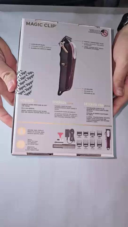 A Wahl Magic Clip Cordless é uma máquina de corte profissional sem fio, recomendada por barbeiros que buscam precisão em degradês, transições e cortes detalhados. Oferece liberdade total de movimento, ergonomia e um acabamento suave, ideal para fade limpo e com marcação visível.