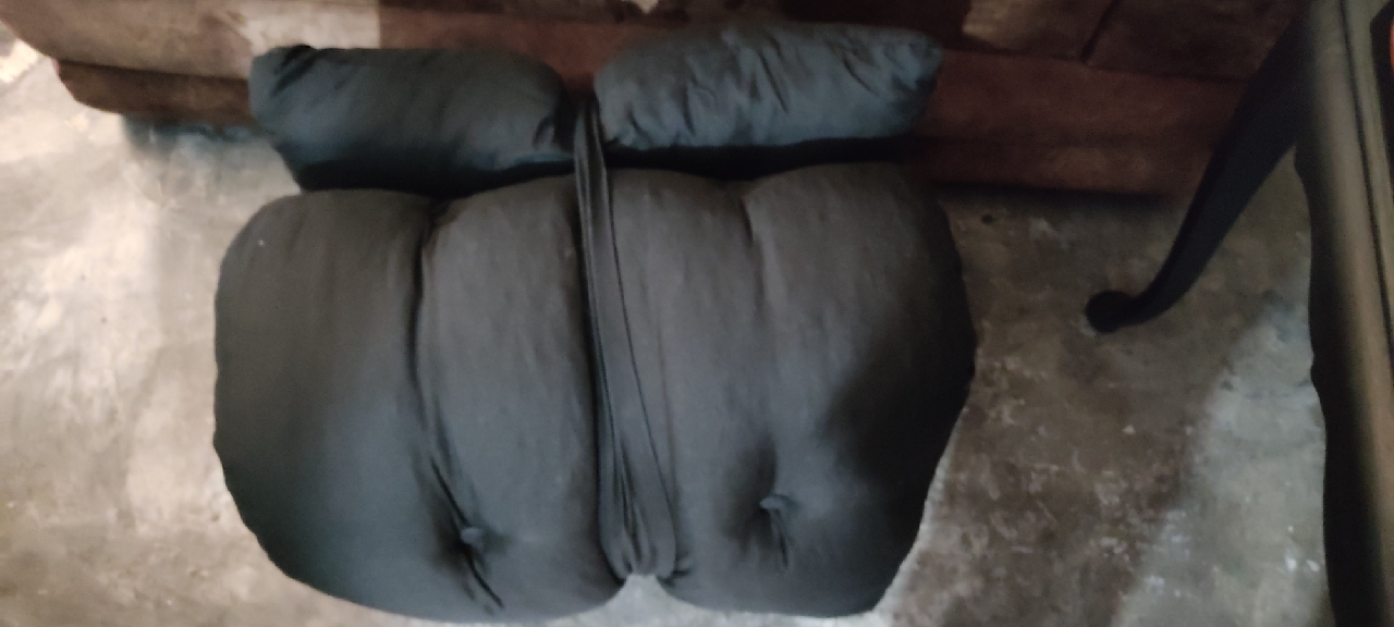 Quando enrolado fica prático para guardar e tem uma alça, facilitando o transporte.