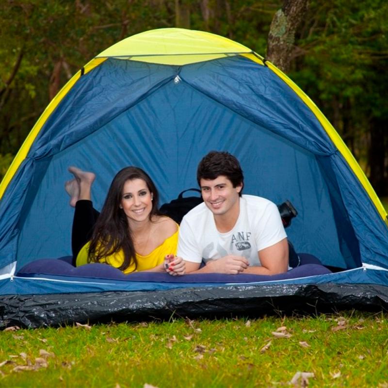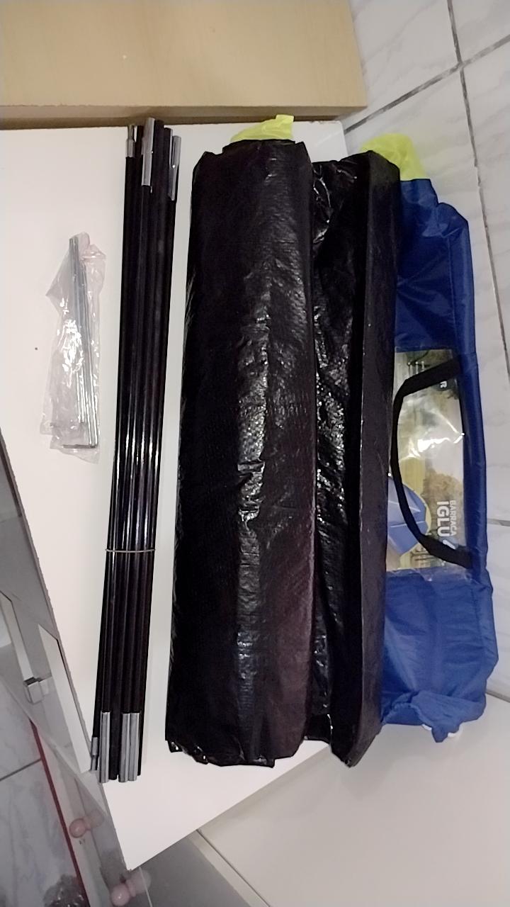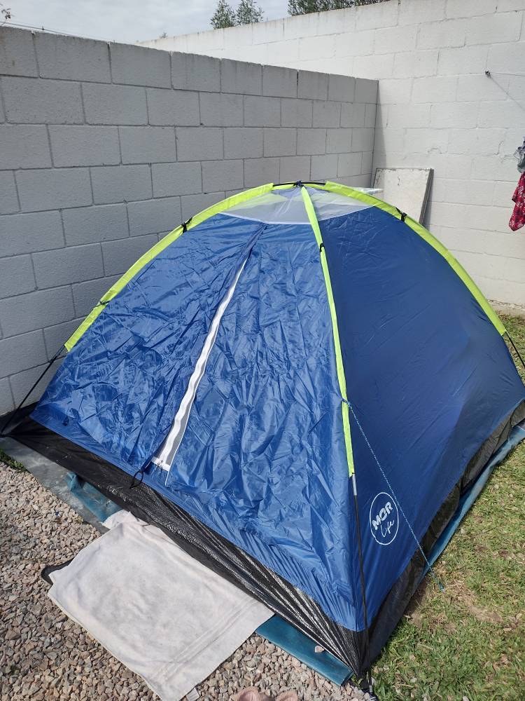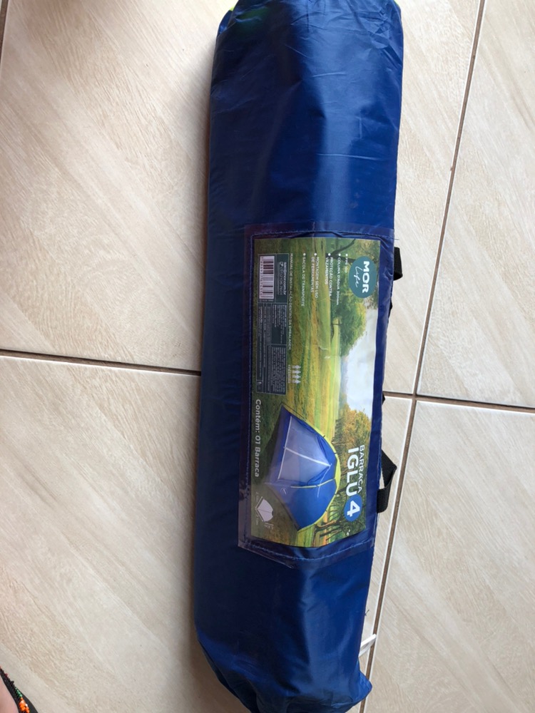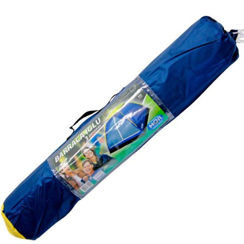 Barraca para Camping Iglu 2,10 x 2,10 Metros para Até 4 Pessoas MORCARACTERÍSTICAS:Barraca fácil de montar, com peso e volume reduzido devido a sua estrutura em varetas de fibra de vidro interligados.São confeccionadas em poliéster, com a costura entre o piso e o dormitório invertida, evitando vazamento de água para o interior da barraca.O piso é confeccionado em polietileno para transporte, porta dupla com tela, mosquiteiro e instruções ilustradas para montagem.DADOS TÉCNICOS:Tecido da barraca: 100% Poliéster;Tecido do piso: 100% Polietileno;Varetas: 100% Fibra de Vidro;Coluna d' água: 300mm;Cor: Azul;;Capacidade: 4 pessoas;;Com Silver Coating;;Mosquiteiro na porta e no teto;;Local para pendurar lanterna dentro da barraca;;Proteção contra vazamentos;;Tamanho e Peso: Aberta: 2,10m x 2,10m x 1,30m;Peso aproximado: 2,1kg.Itens Inclusos:1 Barraca1 Sacola de transporte.* Imagens meramente ilustrativas.