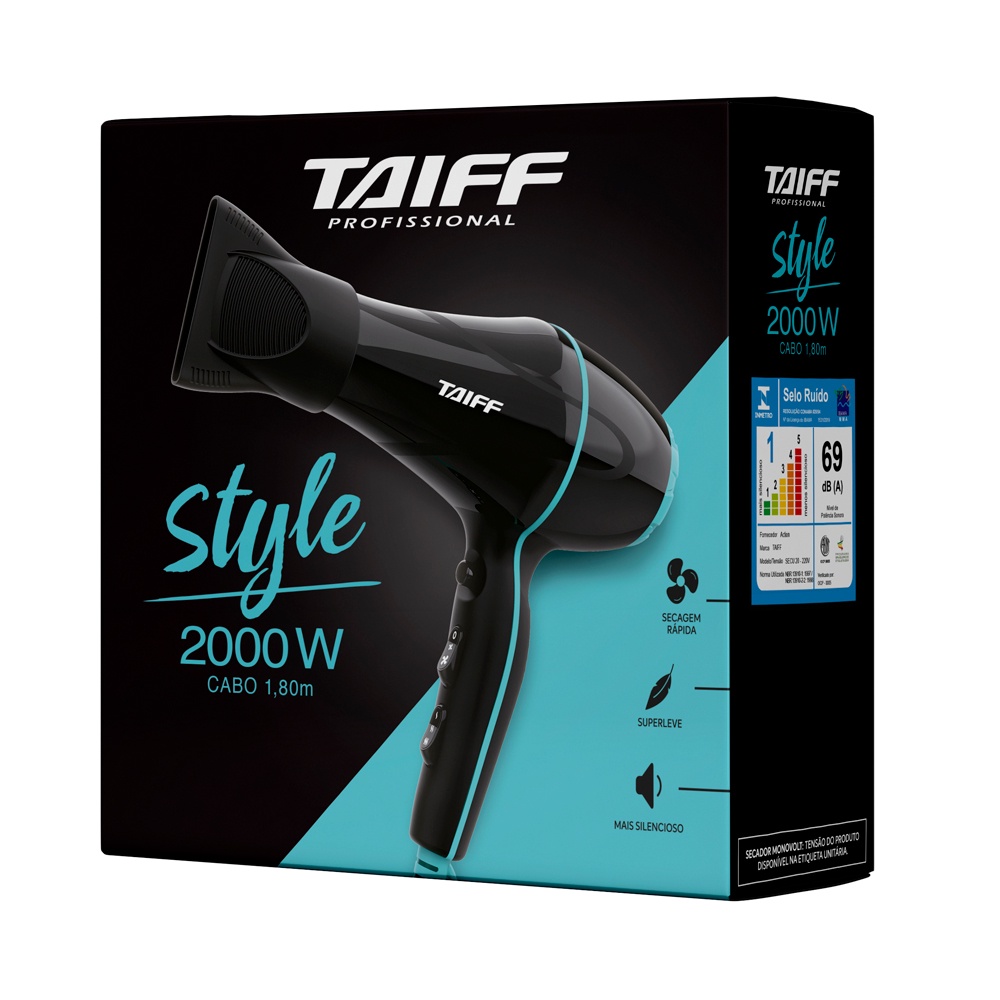 Secador de Cabelos Taiff Style 2000W Profissional Preto 220v