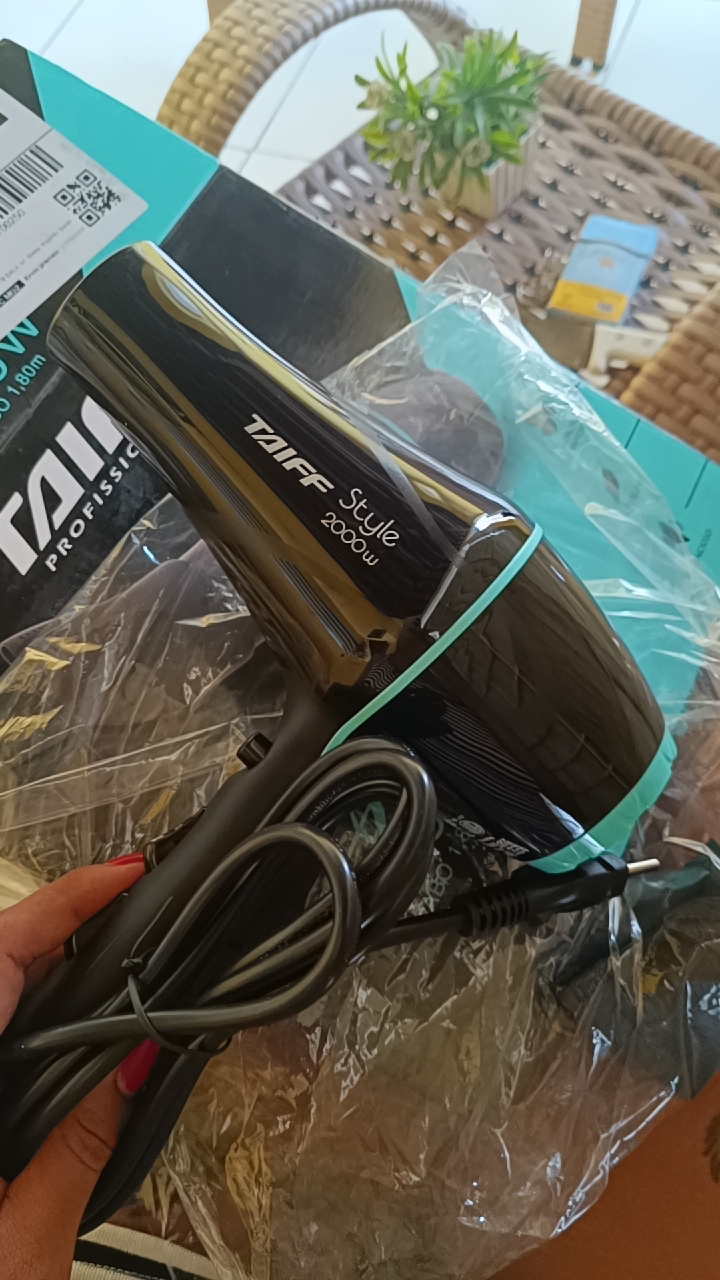 O secador Taiff Style é ideal para uso pessoal. Com potência de 2000W, proporciona agilidade e rapidez na secagem e modelagem dos cabelos. Possui motor AC Profissional, silencioso, maior durabilidade e é superleve. A chave seletora combina temperaturas, velocidades e botão para jato de ar frio, oferecendo 5 temperaturas diferentes. Tem design arrojado, novo bico direcionador de ar e cabo de 1,80 metro de comprimento, que proporciona mobilidade na medida certa. Grade removível, permitindo a limpeza com muito mais facilidade e agilidade. CARACTERÍSTICAS: - Secagem rápida - Superleve - Silencioso - Motor AC profissional - 5 Temperaturas - Mais brilho, menos frizz ESPECIFICAÇÕES: - Voltagem: 220v - Potência: 2000W - Consumo: 2,0 KW/h - Velocidades: 2 - Temperaturas: 3 - Motor: AC Profissional - Cabo: 1,80 metros - Material: PP e Metal - Medidas (AxLxP): 21,5x8,7x21 cm - Peso: 0,68 Kg - Garantia: 6 meses ITENS INCLUSOS: - 01 Secador Taiff Style - 01 Bico direcionador de ar - Manual de Instruções Aqui na Loja O Pescador de Ofertas, você pode concluir a sua compra facilmente, com toda a segurança e a sua entrega é garantida. Aqui você está em 1º Lugar!