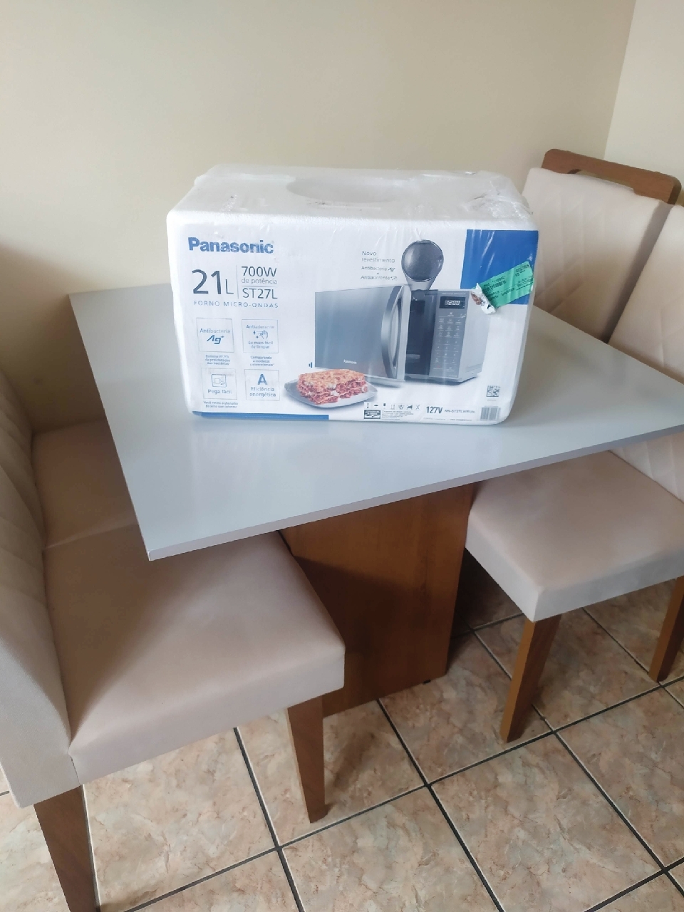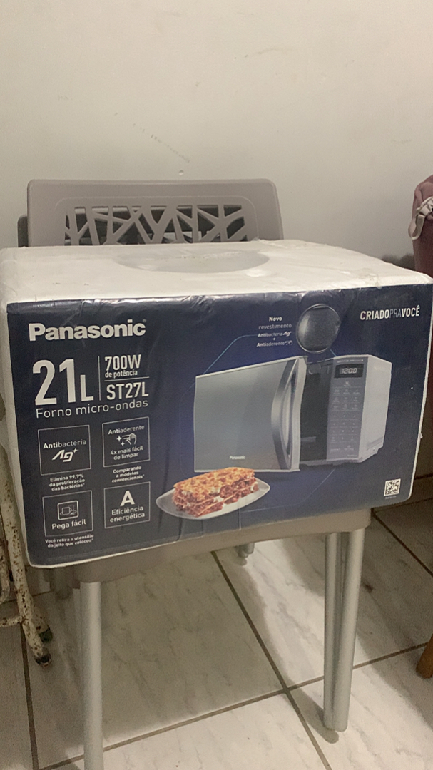 Micro-Ondas Panasonic 21L Branco Espelhado 127V com Tira Odor - NN-ST27LWRUN Obtenha mais praticidade ao cozinhar com este Forno de Micro-ondas Panasonic NN-ST27LWRUN. Com ele é possível preparar deliciosas refeições para você e toda família rapidamente. O eletrodoméstico foi projetado especialmente para pequenos espaços, sem perder eficiência com isso. Ele facilita a tarefa de cozinhar e auxilia no preparo até dos pratos mais delicados, basta utilizar as diferentes funções e níveis de potência. Esqueça o cheiro de uma receita enquanto você prepara outra. O ST27L tem um desodorizador que elimina o cheiro de receitas preparadas anteriormente.E mais, agora a linha está ainda mais moderna e sofisticada, com um novo painel e design sofisticado DESIGN SOFISTICADO Agora a linha está ainda mais moderna e sofisticada, com um novo painel. DESODORIZAR Esqueça o cheiro de uma receita enquanto você prepara outra. O ST27L tem um desodorizador que elimina o cheiro de receitas preparadas anteriormente. LIMPE COM FACILIDADE COM ANTIADERENTE O micro-ondas ST27L é 4 vezes mais fácil de limpar quando o comparamos com os modelos convencionais, por conta do revestimento antiaderente. TECNOLOGIA ANTIBACTERIA O ST27L inibe 99,9 por cento da proliferação das bactérias, pois tem em seu interior o novo revestimento com camada de tinta com sistema antimicrobiano. RETIRE O UTENSÍLIO DO JEITO QUE COLOCOU COM O PEGA FÁCIL Sabe quando você vai aquecer algo em uma xícara e, quando o micro-ondas para, ela está no fundo do aparelho, com a asa virada para trás, é um dos problemas que a tecnologia Pega Fácil resolve para você. Assim que o aquecimento termina, o prato faz uma rotação para que você pegue o utensílio exatamente onde o deixou. ESPECIFICAÇÕES: Volume Total: 21L Registro Inmetro: 005198/2020 Voltagem: 127V Potência Micro-ondas: 700 W Níveis de Potência: 10 Eficiência Energética: 54,1 por cento (A) Cor externa: Branca Cor interna: Cinza Porta: Espelhada Display (cor): Branco Diâmetro do prato: 27cm Receitas Pré-Programadas: 3 Autodescongelamento: 2 Memória: 3 Autorreaquecimento: Sim Desodorizador: Sim Adicionar 30 Seg: Sim Relógio: Sim Trava de Segurança Eletrônica: Sim Dimensões: Dimensões do Produto (L x A x P): 442 x 260 x 366 mm / Peso aproximado: 10,4kg Dimensões da Embalagem (L x A x P): 480 x 307,5 x 390mm / Peso aproximado: 11,2kg Imagens de caráter ilustrativo Informações divulgadas de acordo com o manual do fabricante Produto novo na caixa, lacrado com NF e garantia do fabricante de 1 ano. Em caso de duvidas sobre informações técnicas, utilização, limitações e manuseio do produto, verifique o manual do fabricante. EAN: 7896067222430 NAC010343