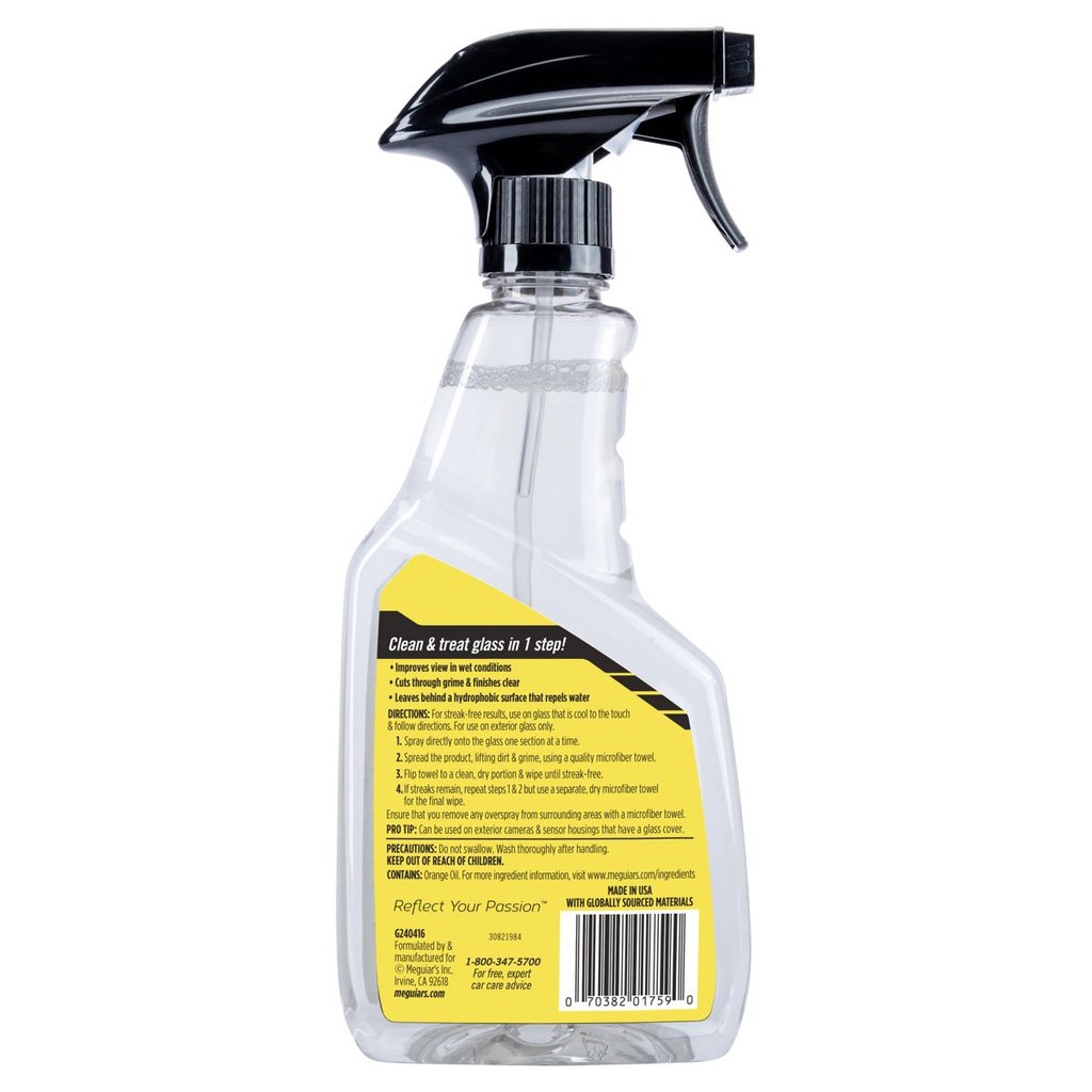 FÁCIL E CONVENIENTE: Limpador de janelas fácil de usar sem precisar agarrar a toalha. Basta borrifar e limpar com uma toalha de microfibra premium ou toalha de vidro de microfibra, como a Toalha de Vidro Perfect Clarity da Meguiar para uma limpeza rápida e fácil com repelente hidrofóbico