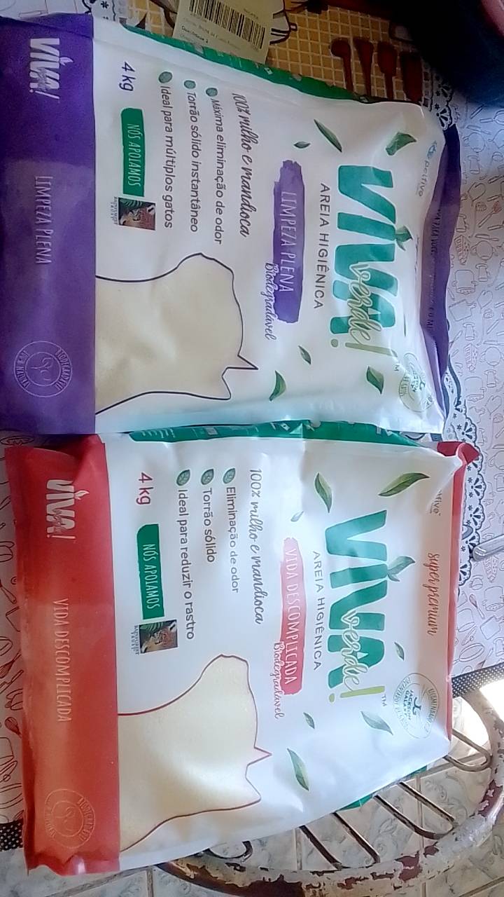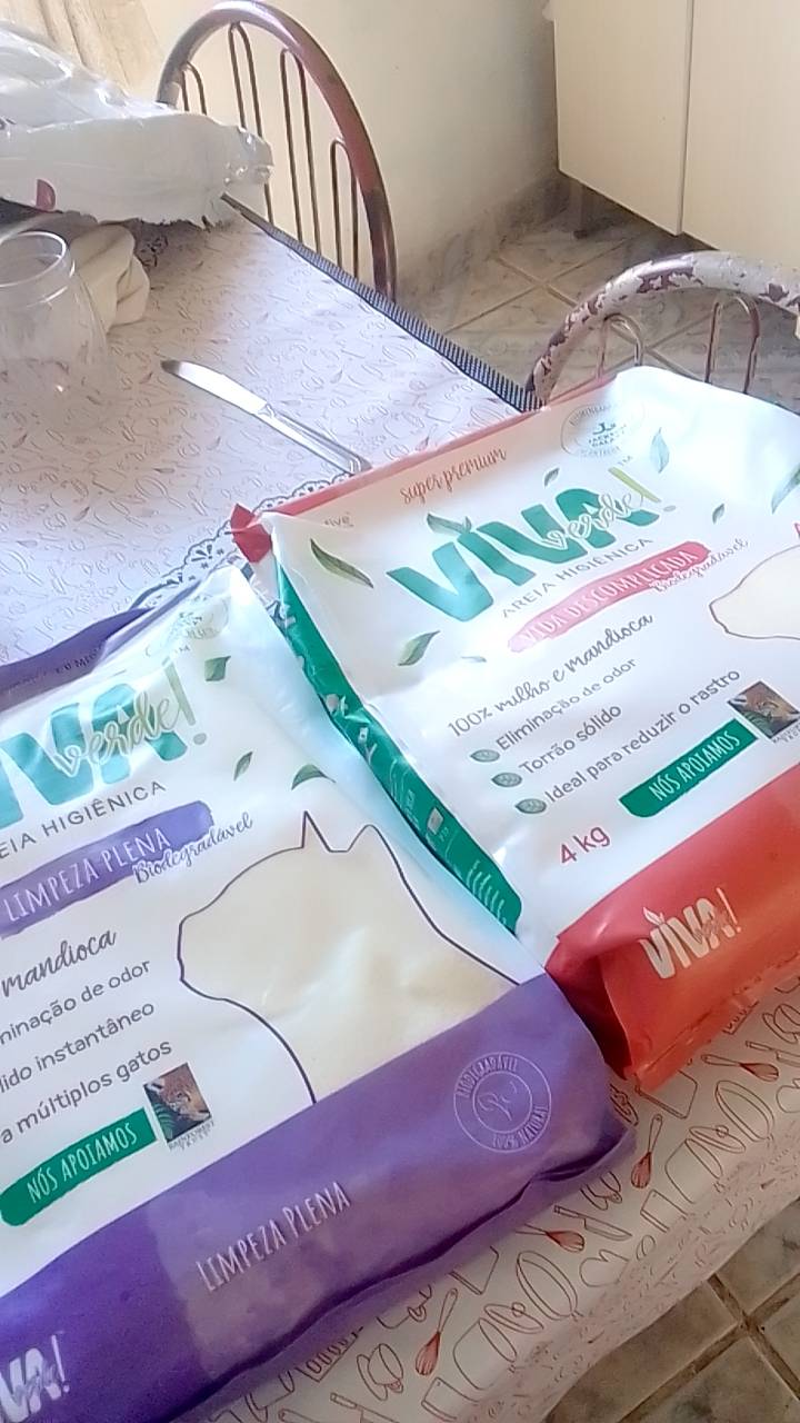 A Areia Viva verde! É produzida à base de milho e mandioca, contém uma formulação muito mais eficiente que outros produtos. Os torrões são firmes, não deixam a casa com cheiros desagradáveis e não sujam a caixinha de areia, nem a pá.