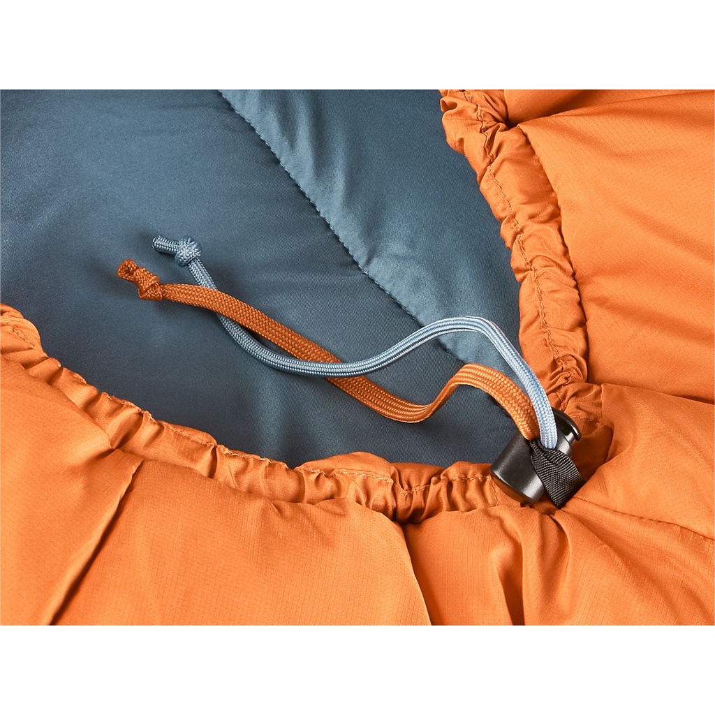 Seu material exterior é produzido com Nylon Deuter Dura Lite RS super macio com tecnologia anti-rasgos (RipStop), garantindo maior resistência. O enchimento de duas camadas é produzido com material High-Loft Hollowfibre, uma fibra sintética da Deuter que garante excelente proteção térmica por toda sua volta (360º Insulation System). Seu modo de construção sem costura garante maior eficiência térmica e resistência à água.
