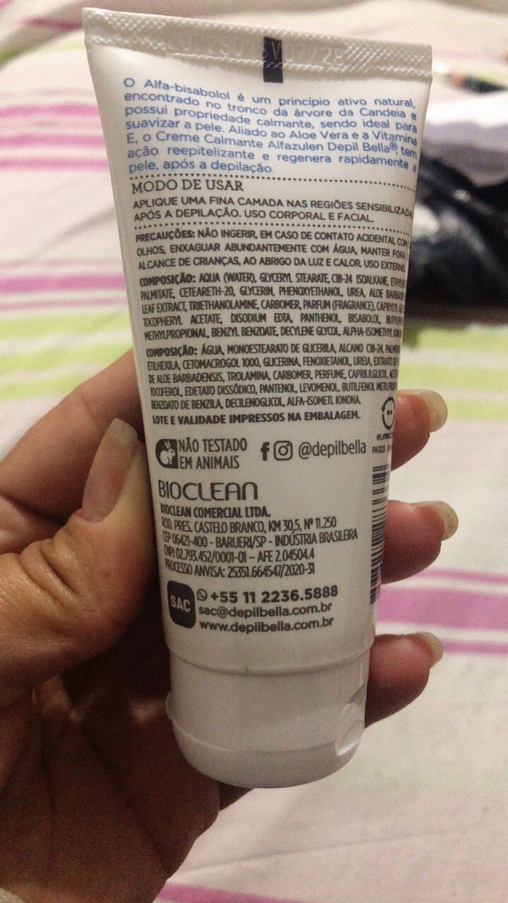 Modo de Usar: Aplique uma fina camada sobre a pele, no local onde foi depilado.