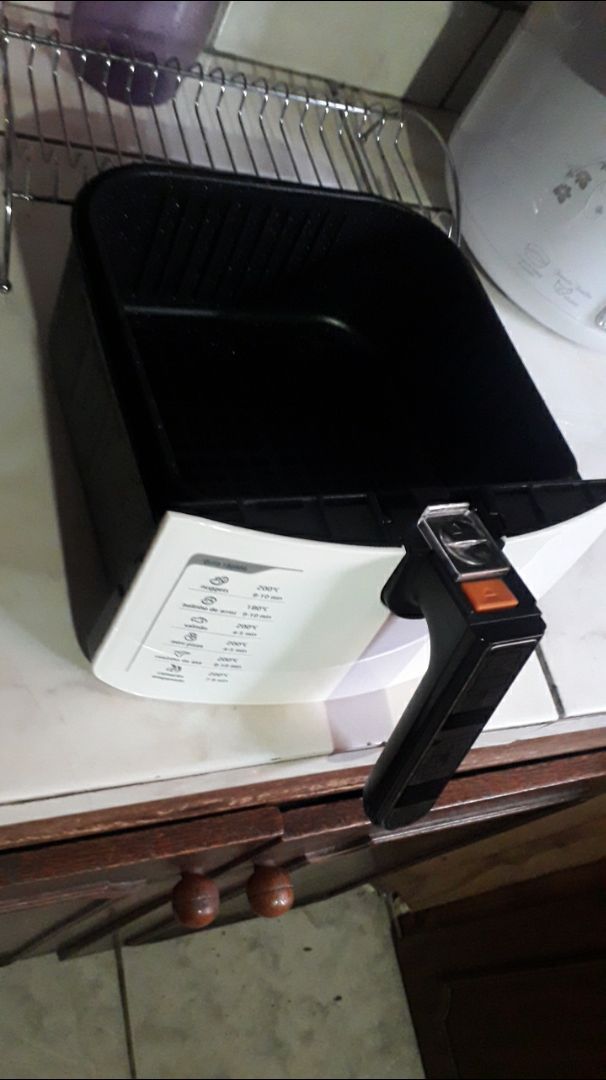 Possui cesto removível e bandeja de material antiaderente, de fácil limpeza e que pode ser levada à máquina de lavar louça. Tudo isso com baixa emissão de odores e gordura na sua cozinha e segurança dos sistemas de timer e desligamento automático ao retirar a bandeja.