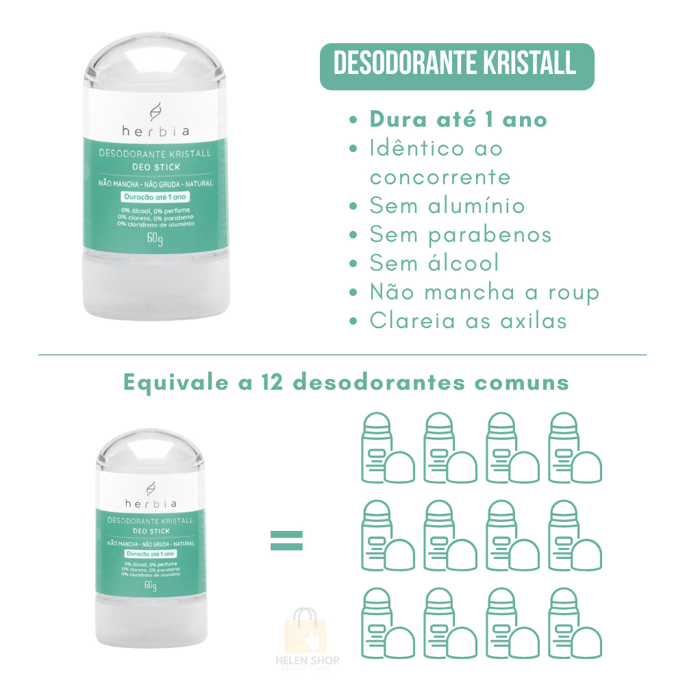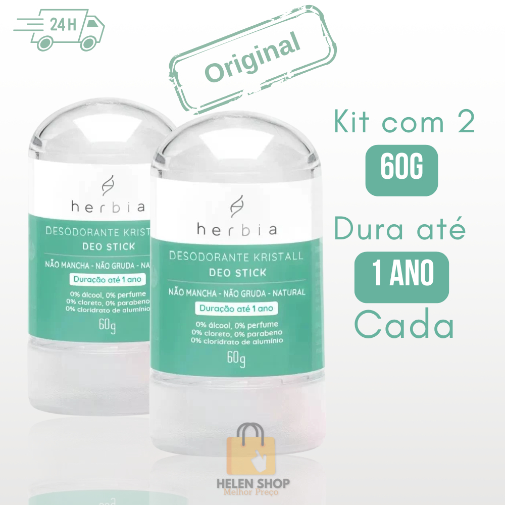 Kit 2 Desodorante Cristal Natural Stick 60g pedra sal sem cheiro vegano Kristall Herbia