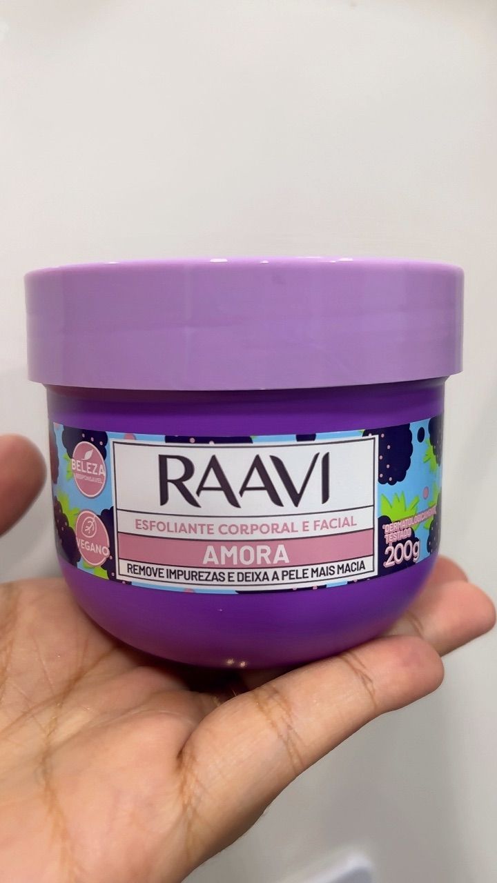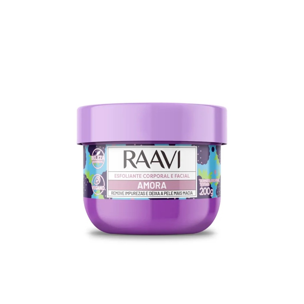 - Beneficios: Renove sua pele com a delicadeza e o poder da natureza usando o Esfoliante Corporal e Facial Amora Raavi, especialmente formulado para deixar sua pele renovada, nutrida e irresistivelmente perfumada. Este produto único, com 200g, é a escolha perfeita para quem busca cuidado e respeito pela pele e pelo meio ambiente. Pele Renovada e Perfumada: Enriquecido com extrato natural de amora e batata roxa, este esfoliante não apenas remove impurezas e células mortas, mas também deixa um aroma suave e agradável que encanta os sentidos, trazendo a sensação de frescor e limpeza. Livre de Corantes: Com a promessa de cuidado e respeito à sua pele, este produto é livre de corantes artificiais, garantindo uma experiência de esfoliação natural e segura, adequada até para as peles mais sensíveis. Manteiga de Karité: Conhecida por suas propriedades hidratantes e nutritivas, a manteiga de karité presente na fórmula proporciona uma nutrição profunda, deixando a pele hidratada e revitalizada após cada uso.