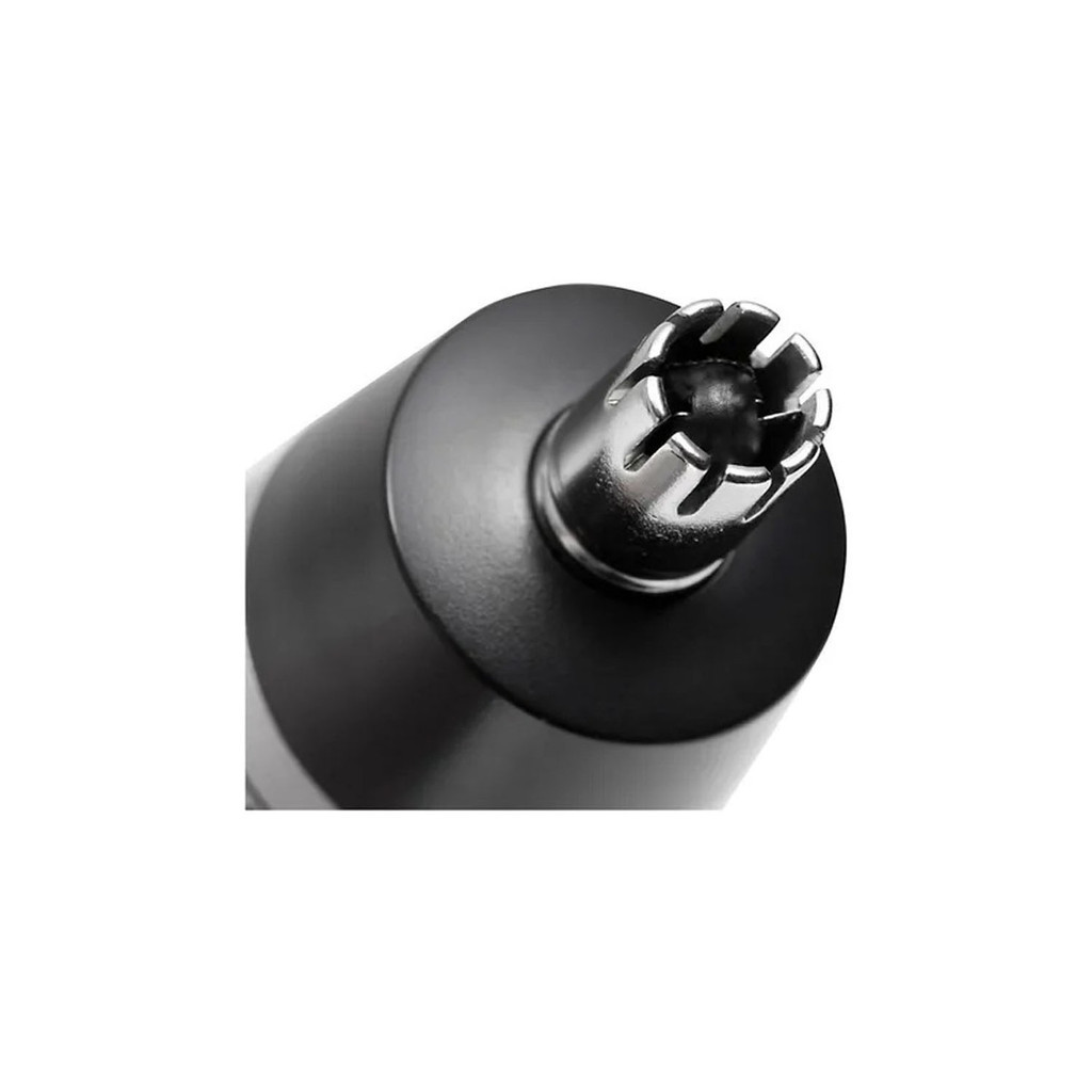 Conta com lâminas rotativas de aço inoxidável, ideal para aparar os pelos da orelha e nariz, de forma rápida, fácil, precisa e higiênica.