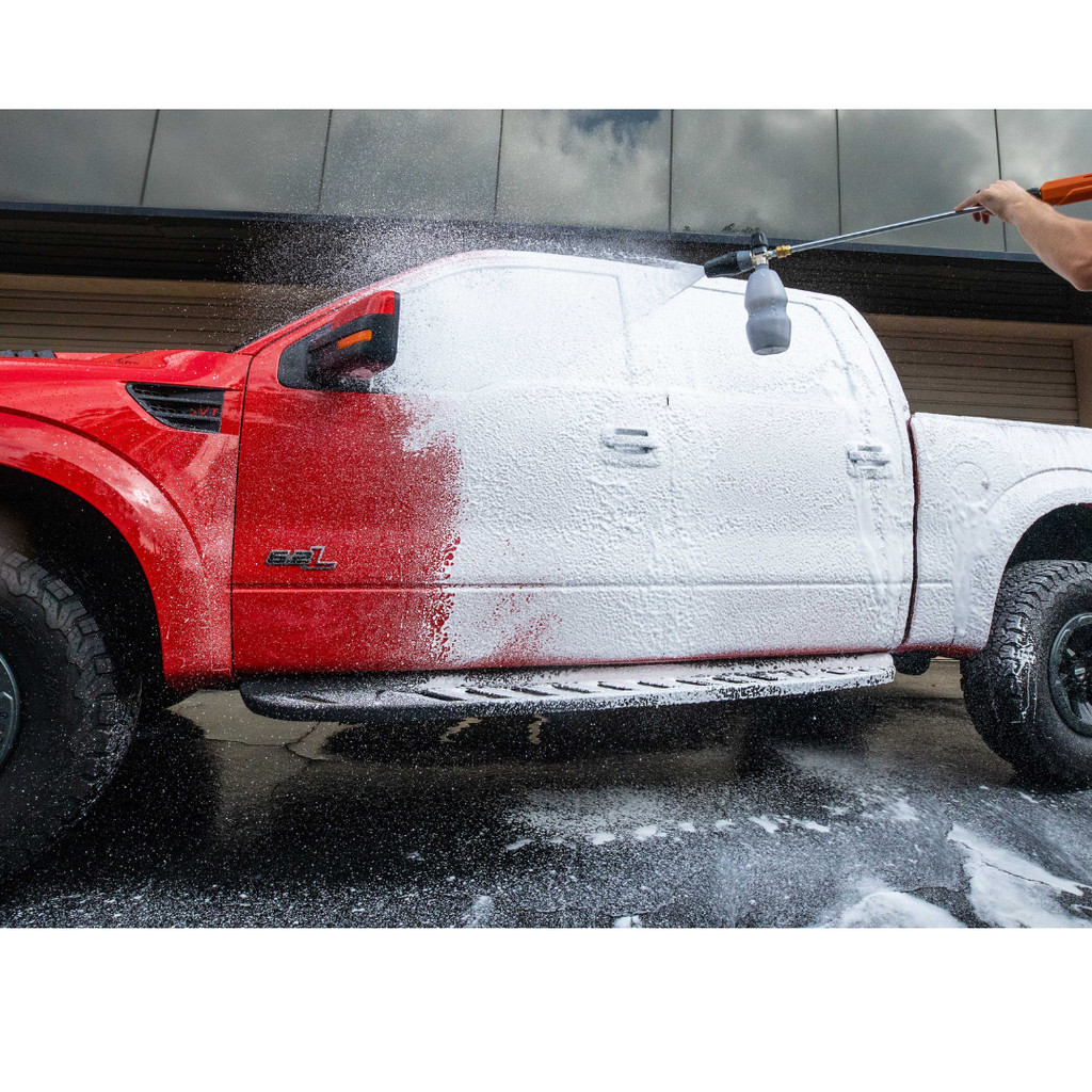 Projetado especialmente para acabamentos com cera, selante ou revestimento cerâmico. O ULTIMATE SNOW FOAM da MEGUIAR´S limpa sem remover a proteção. A espuma adere á superfície, soltando suavemente a sujeira da estrada em carros levemente sujos para permitir um enxague com pressão sem toque, mas também lubrifica a superfície em veículos mais sujos para quando uma luva de lavagem é necessária.