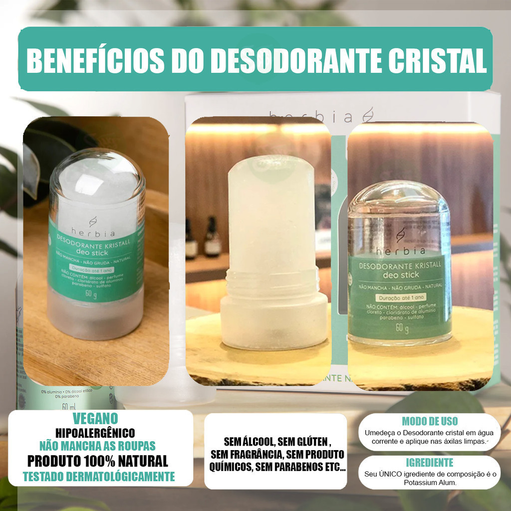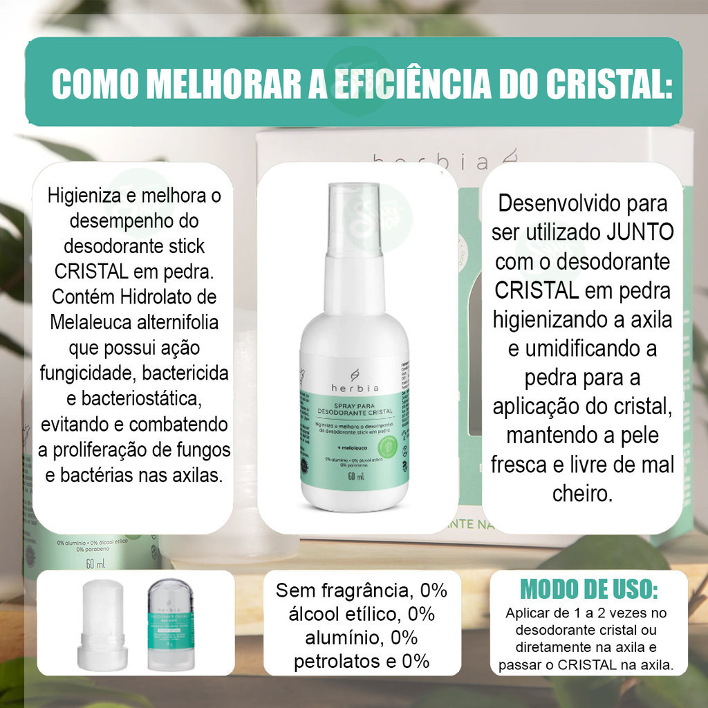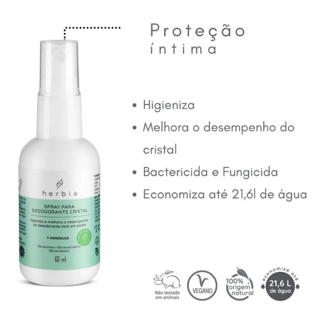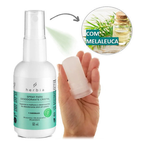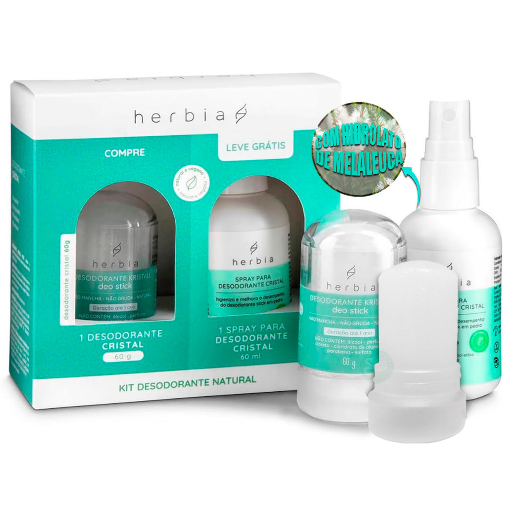 Desodorante Herbia Kristall Stick 60g Cristal Sem Alumínio Spray Antisséptico Hidrolato Malaleuca