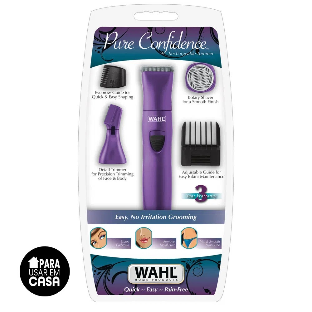 O aparador de pelos recarregável Pure Confidence é uma solução prática e fácil de usar para as mulheres modernas! Esse aparelho conta com 3 cabeças aparadoras: para aparar pelos do corpo, para detalhes e áreas menores como a sobrancelha e para áreas mais sensíveis, como a região do biquíni.