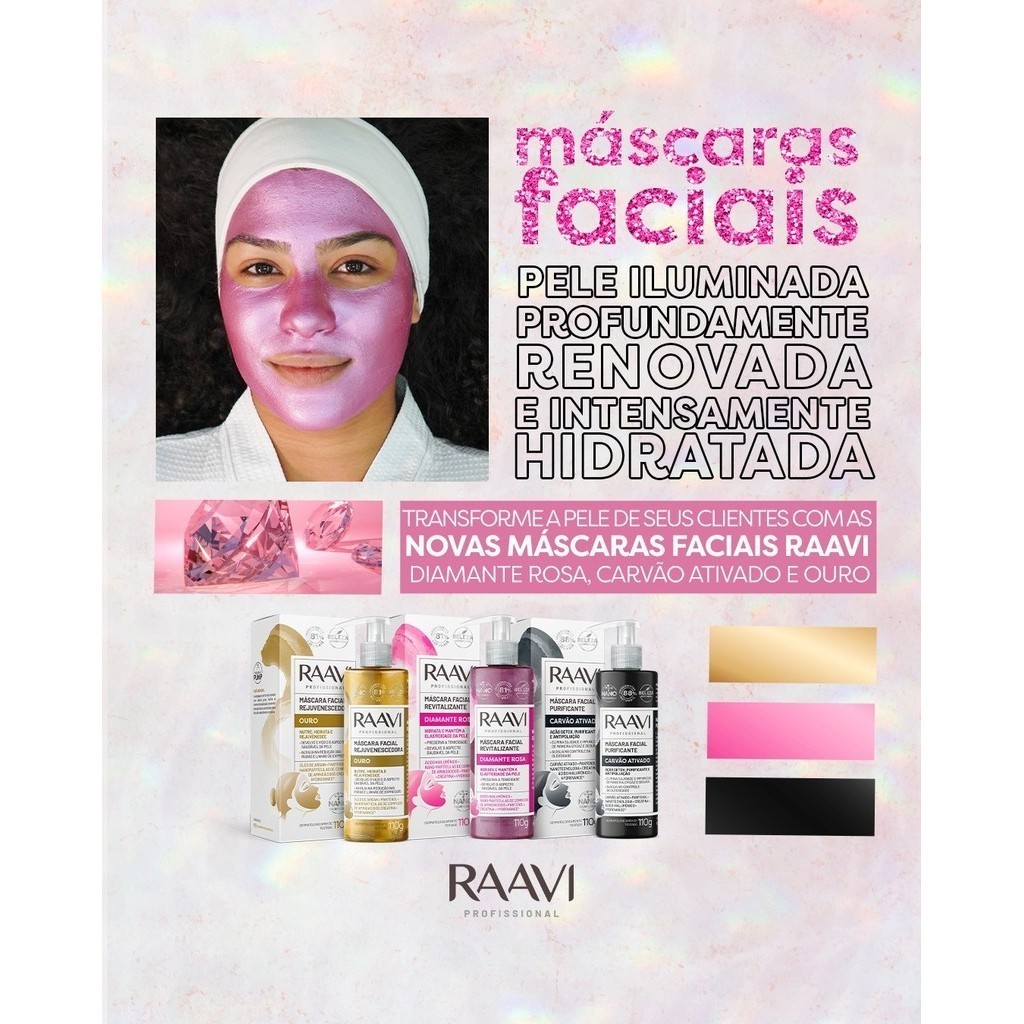Rica em ativos rejuvenescedores, a Máscara Ouro Raavi penetra profundamente na pele, fornecendo uma hidratação intensiva, restaurando a vitalidade e o brilho natural da pele.